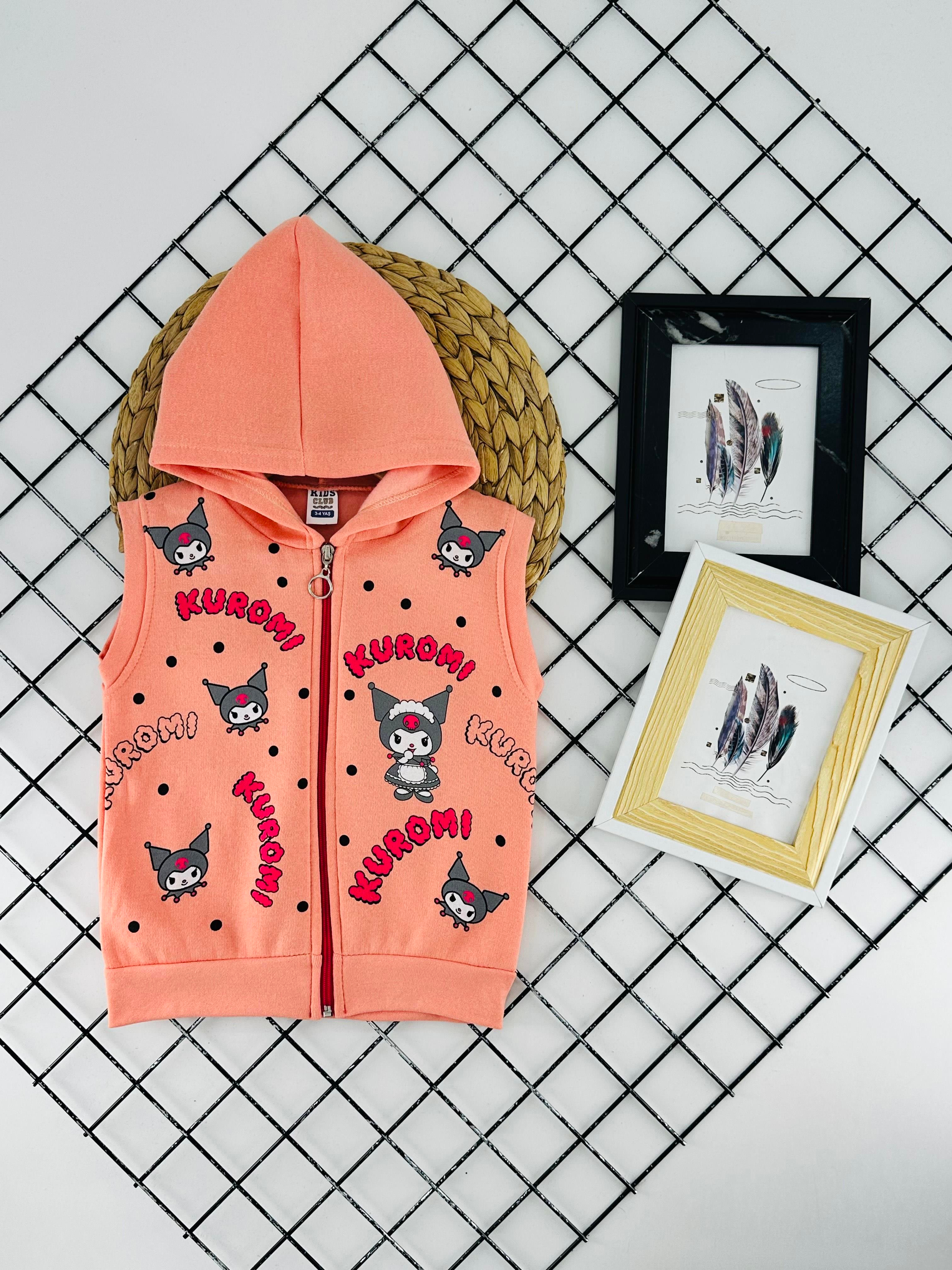 0350-1 Krm Baskılı Kız Çocuk Üç İplik Şardonlu Yelek-SOMON