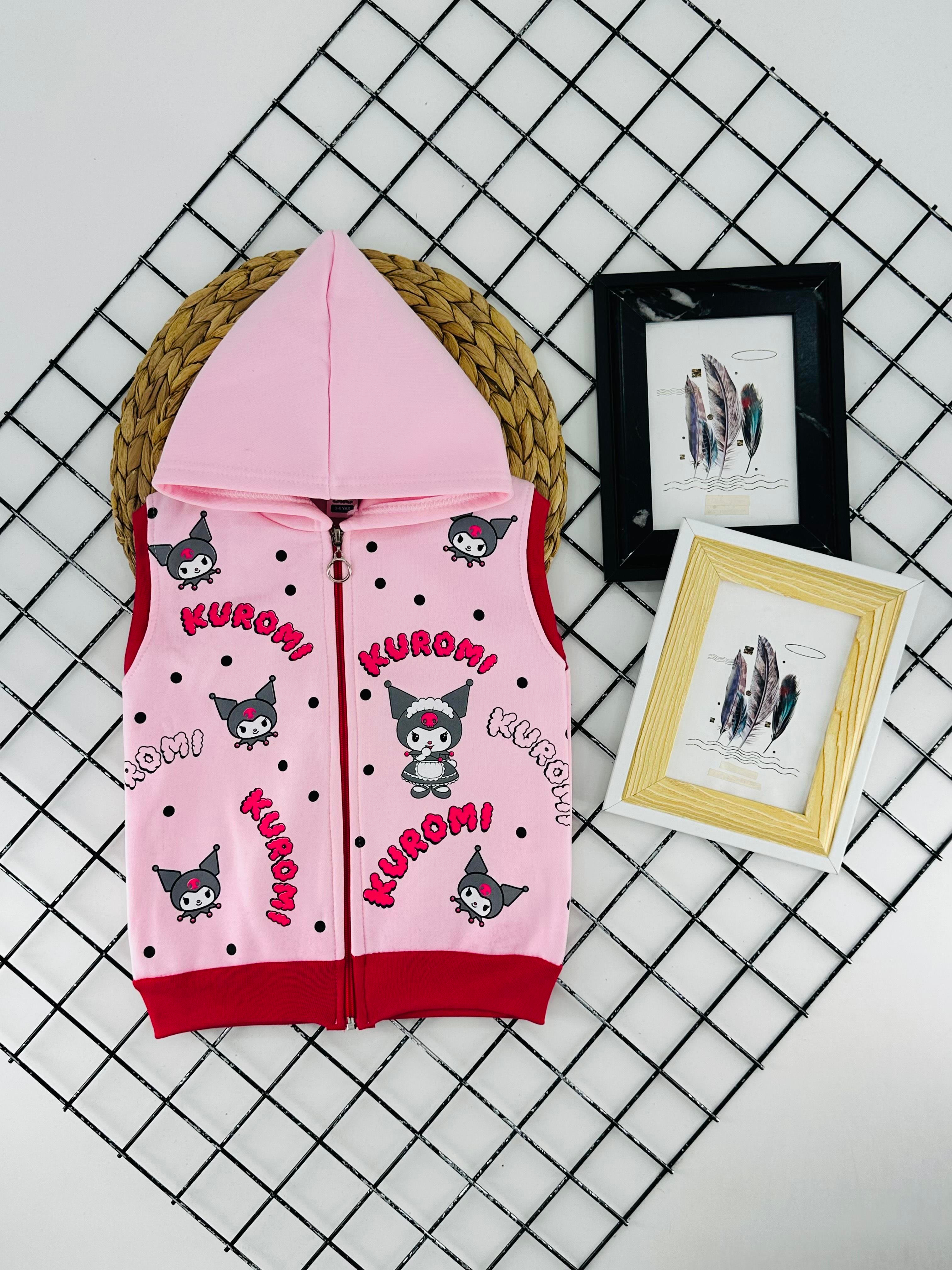 0350-1 Krm Baskılı Kız Çocuk Üç İplik Şardonlu Yelek-TOZ PEMBE