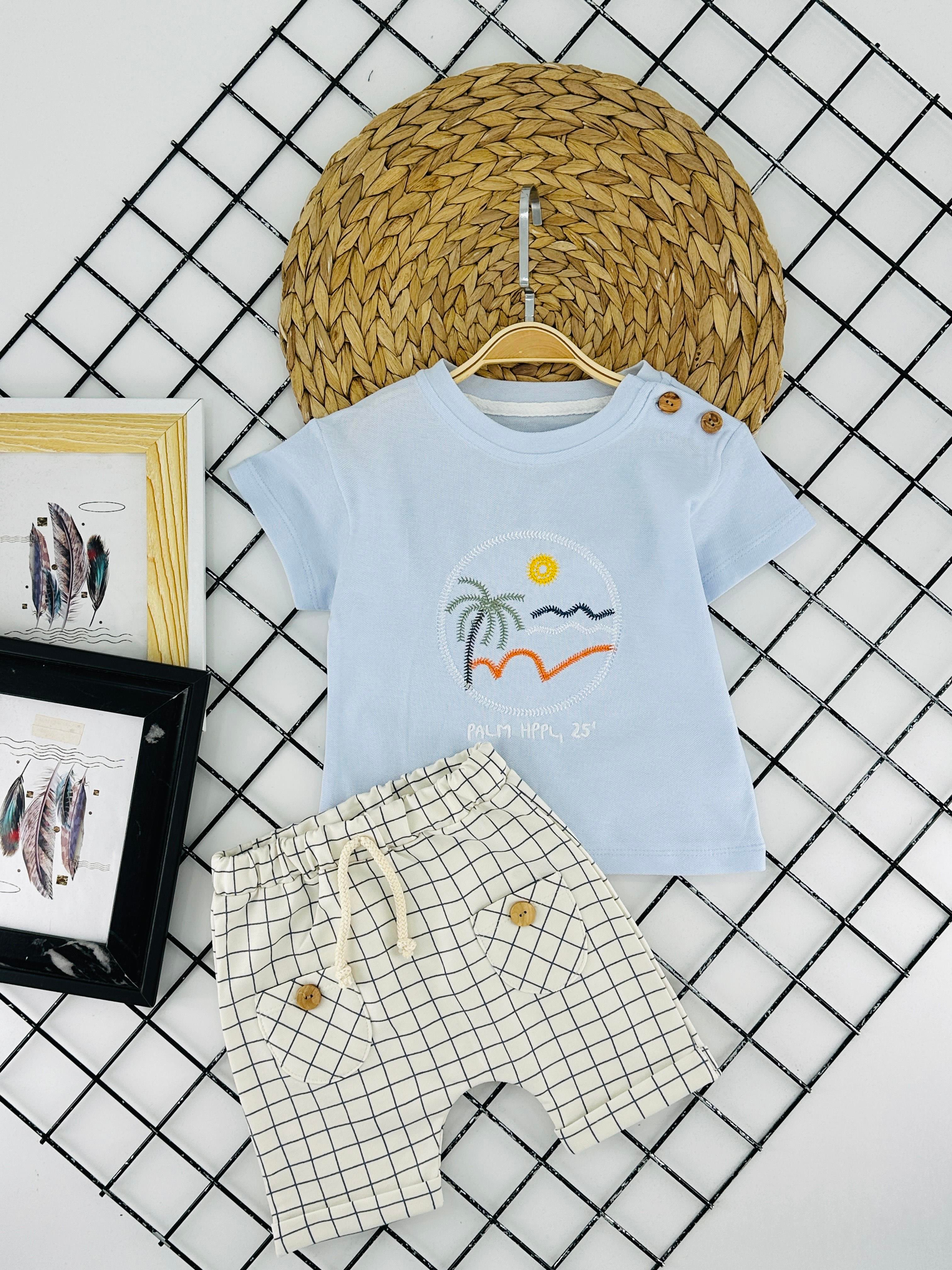 0540 Ağaç Baskılı Şortlu Erkek Bebek Takım-BUZ MAVİ 0540 Ağaç Baskılı Şortlu Erkek Bebek Takım-MAVİ