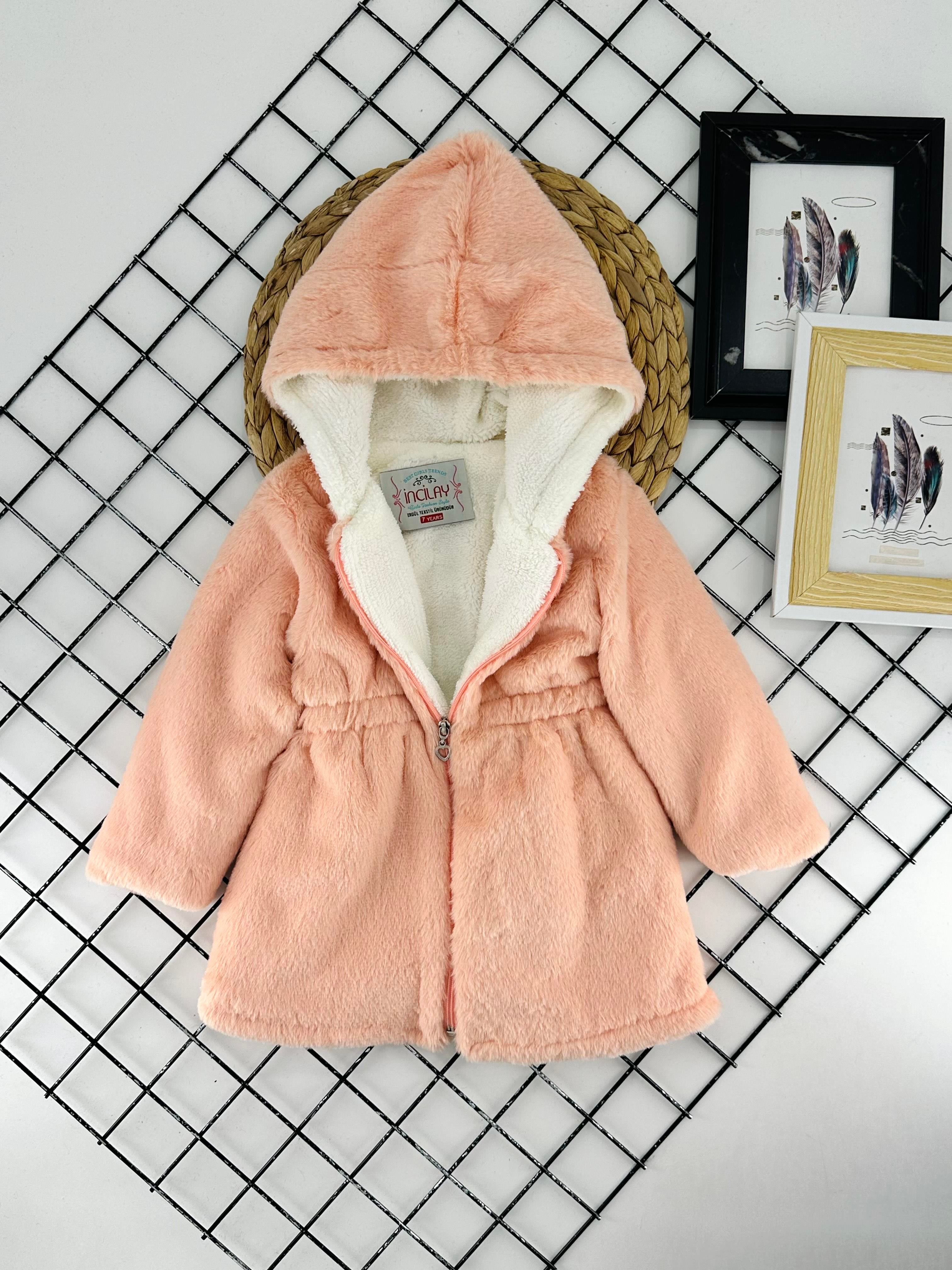 0708 Robit Kapşonlu Kız Çocuk Kürk Mont-SOMON