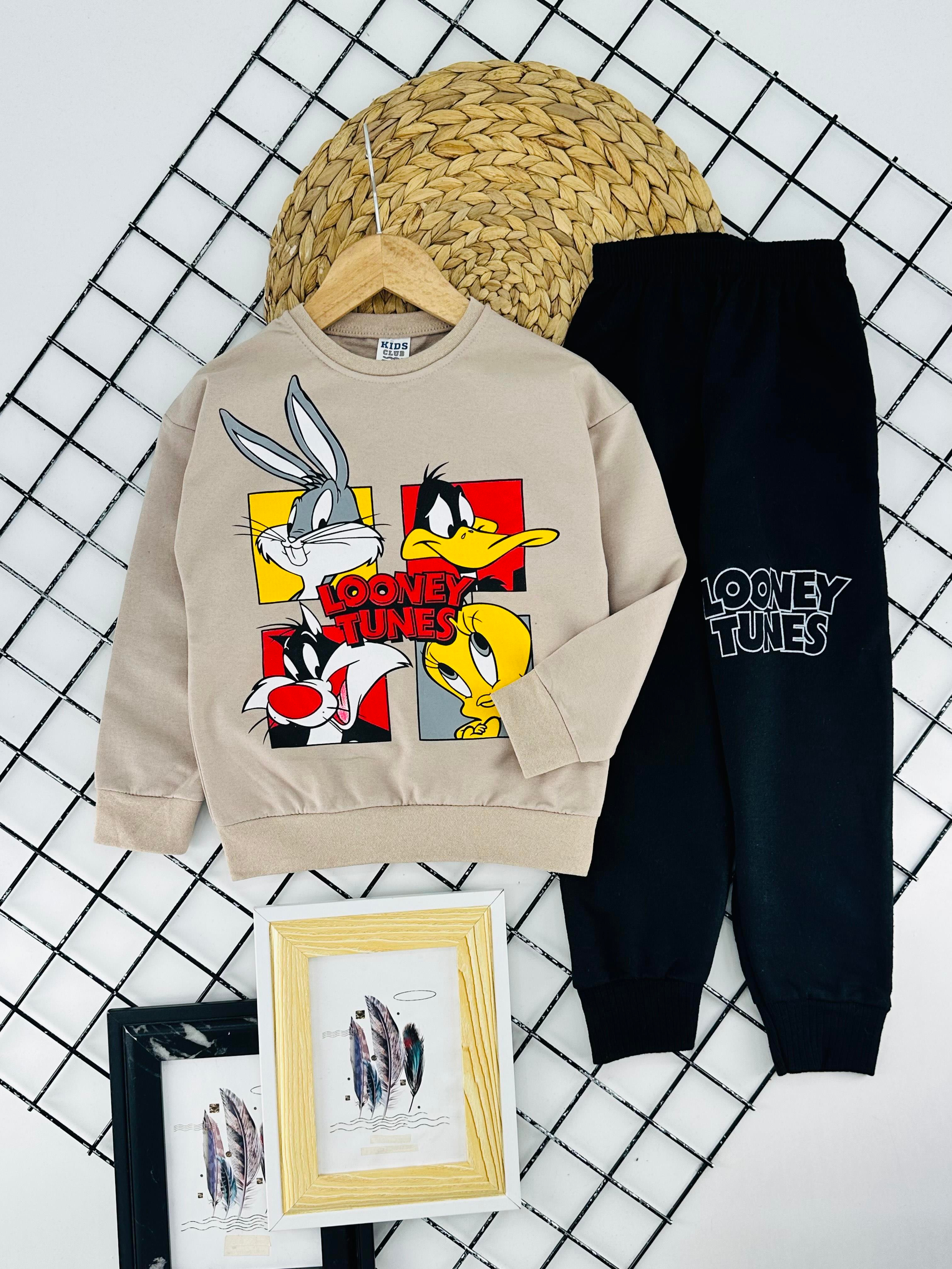 0794-2 Tavşan Ördek Baskılı İki İplik Penye Erkek Çocuk Takım-BEJ