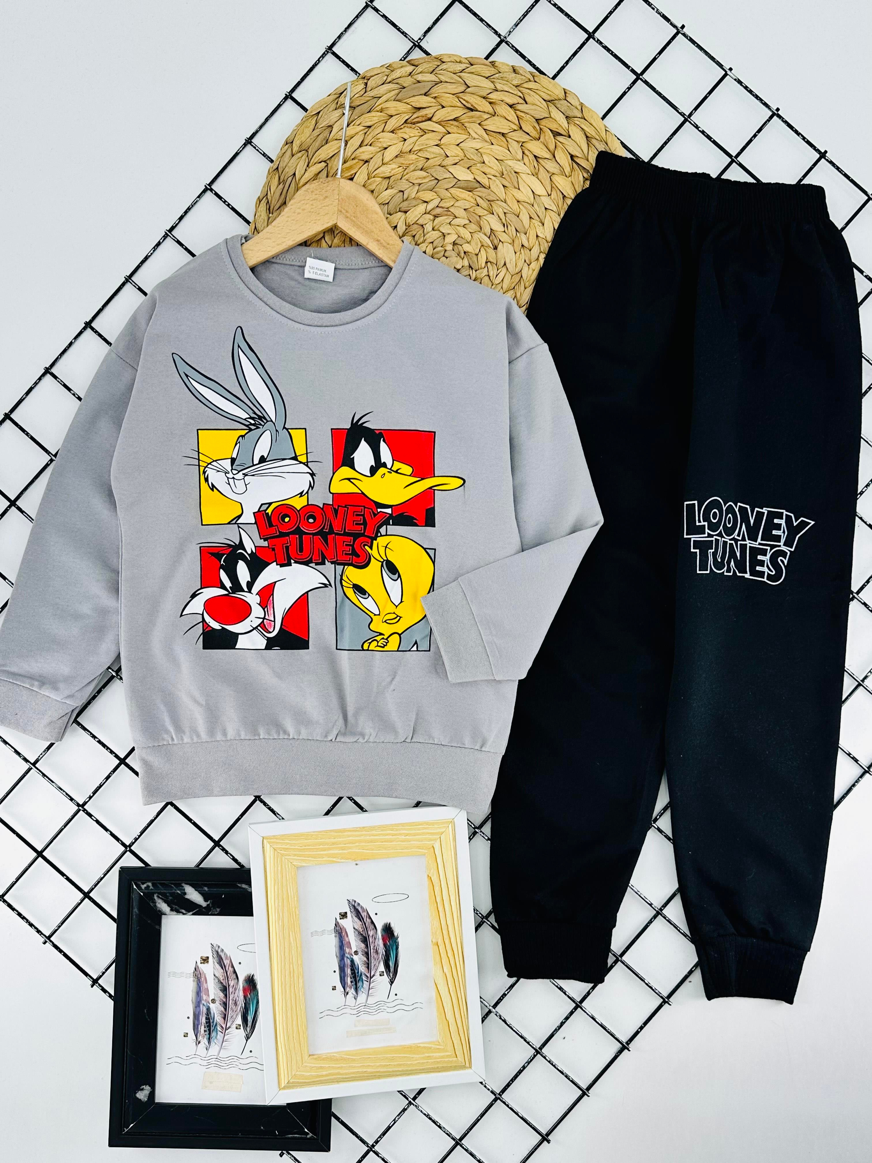 0794-2 Tavşan Ördek Baskılı İki İplik Penye Erkek Çocuk Takım-GRİ