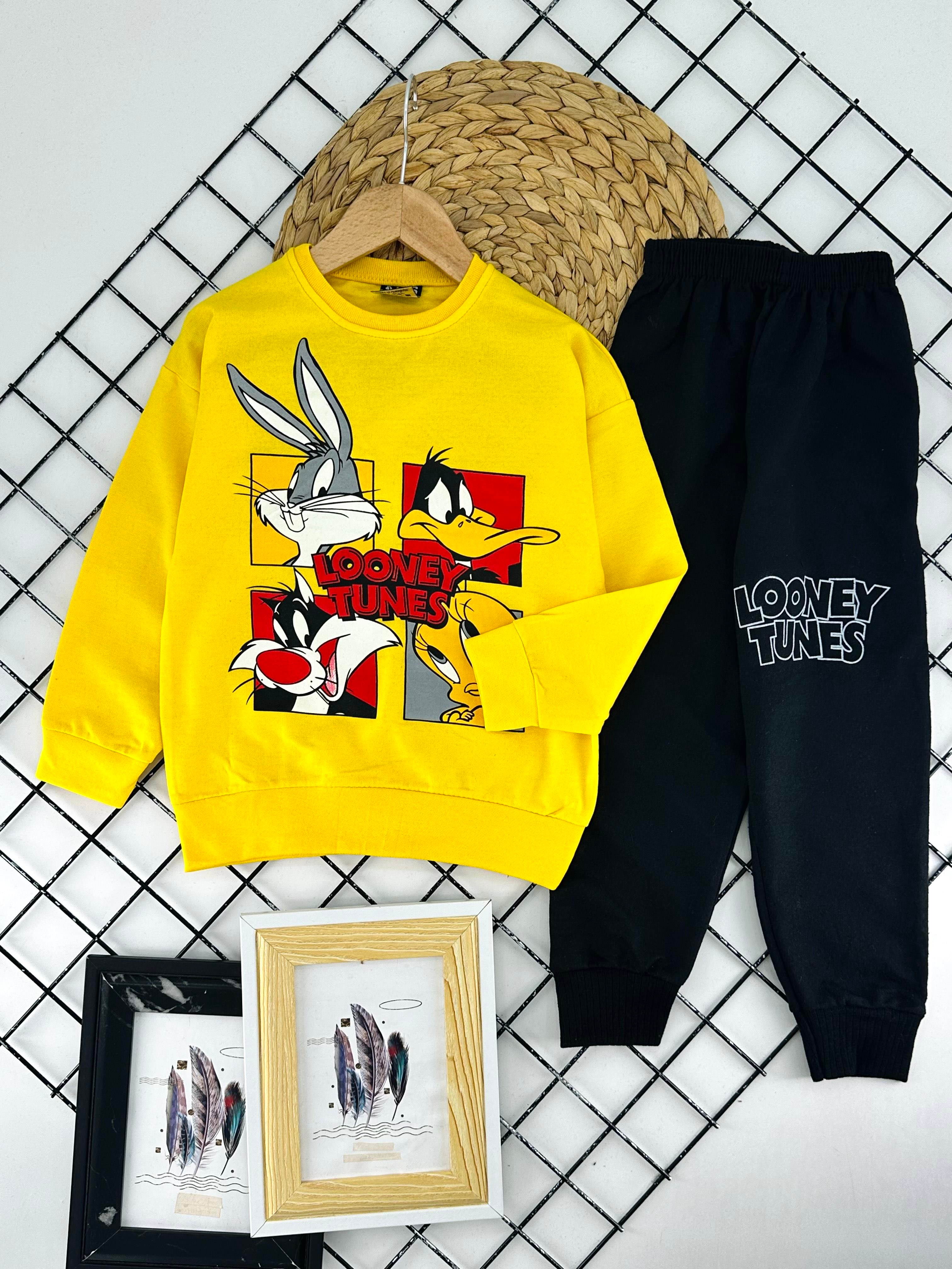 0794-2 Tavşan Ördek Baskılı İki İplik Penye Erkek Çocuk Takım-SARI