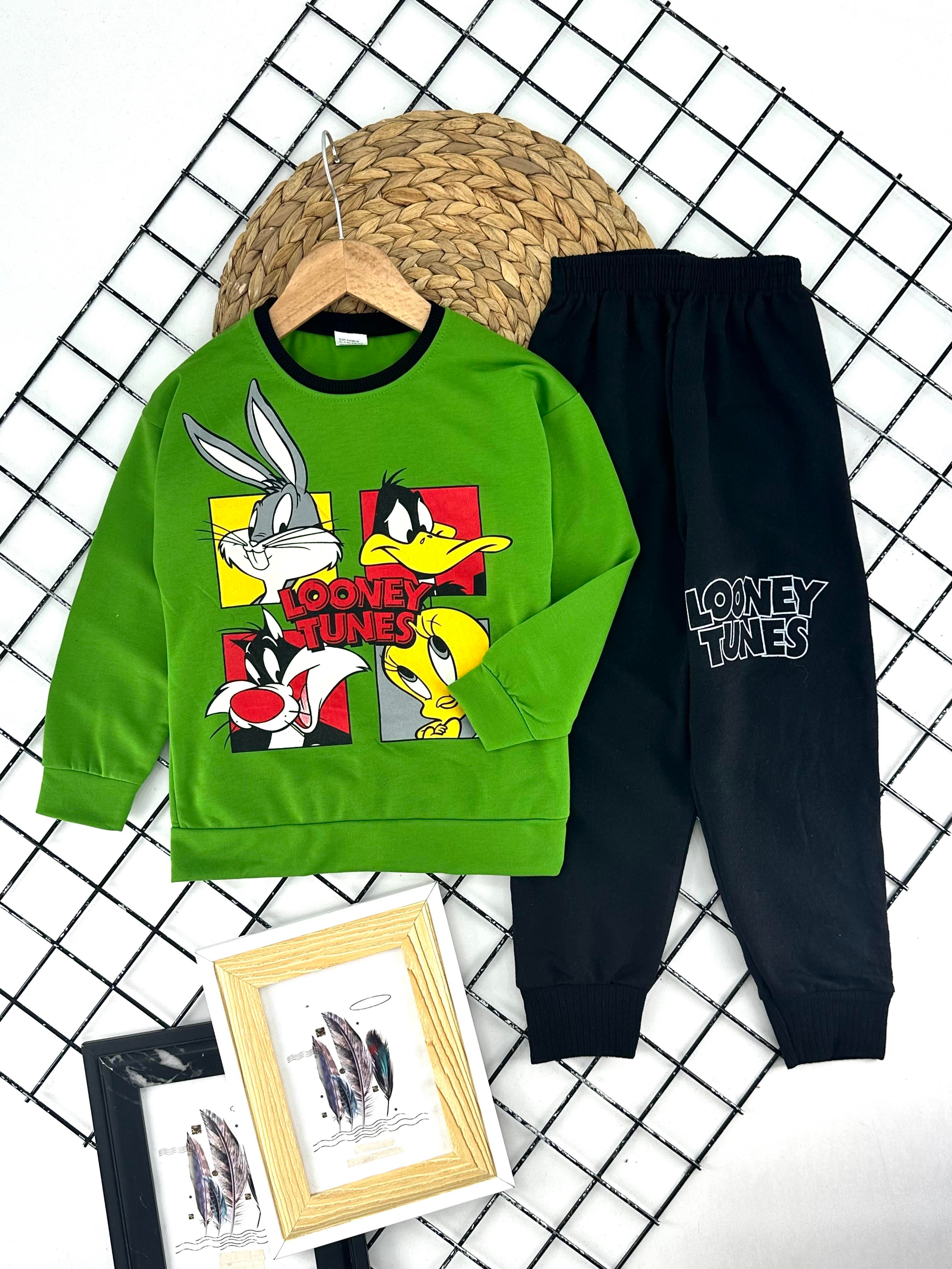 0794-2 Tavşan Ördek Baskılı İki İplik Penye Erkek Çocuk Takım-YEŞİL