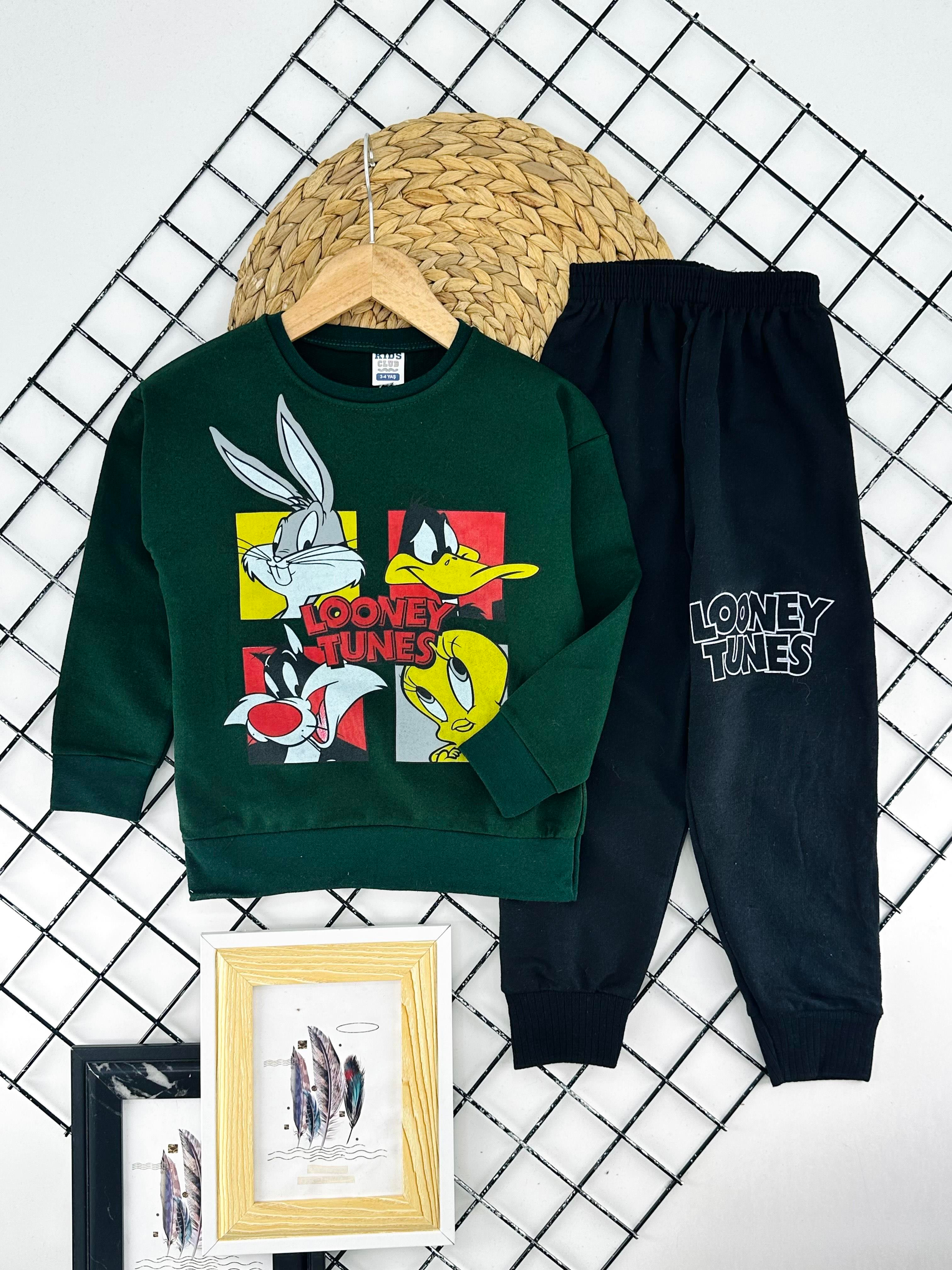 0794-2 Tavşan Ördek Baskılı İki İplik Penye Erkek Çocuk Takım-ZÜMRÜT YEŞİL