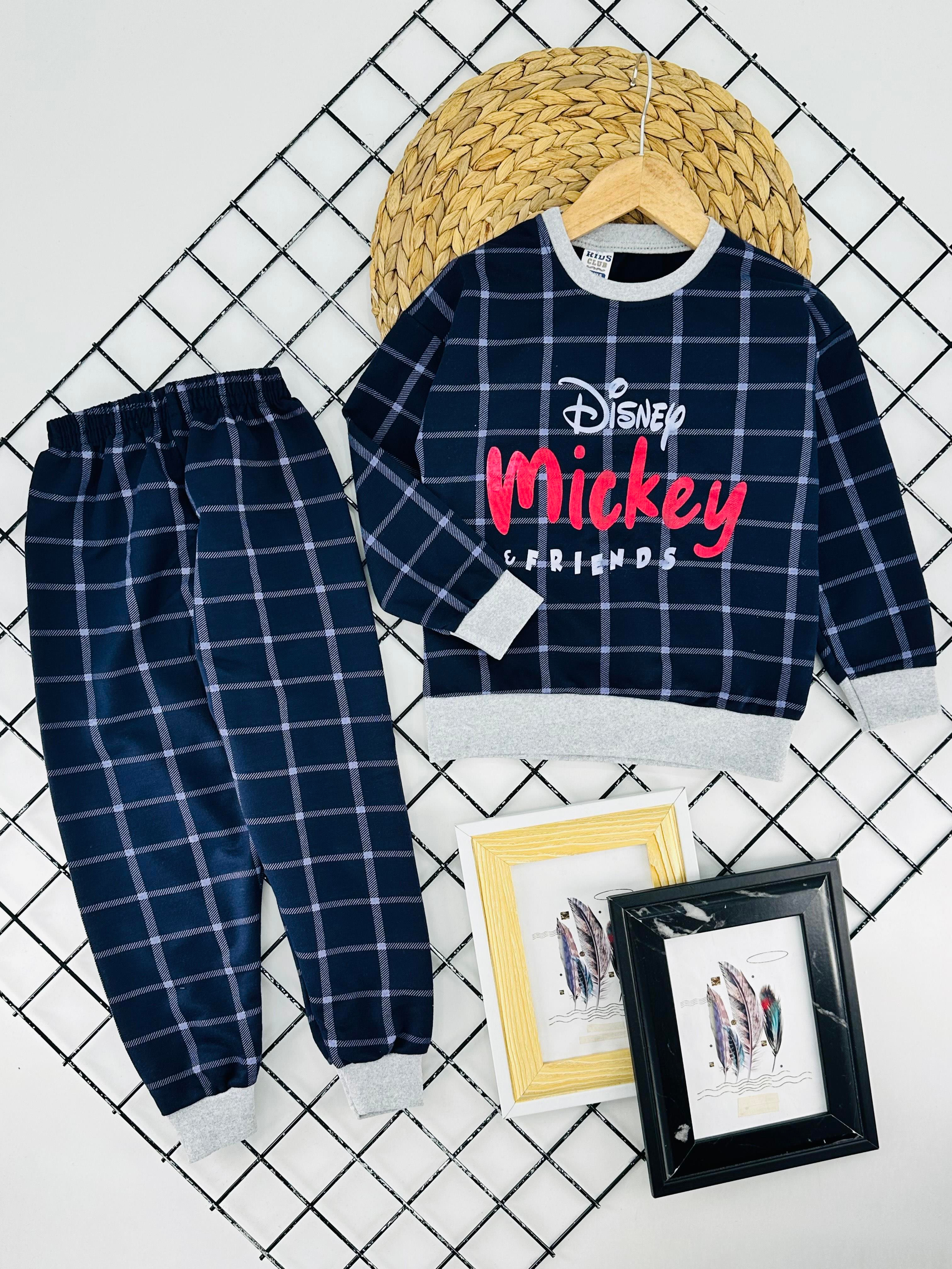 0794-3 Mcky Yazılı Çizgili Erkek Çocuk Penye İki İplik Takım-FÜME 0794-3 Mcky Yazılı Çizgili Erkek Çocuk Penye İki İplik Takım-LACİVERT