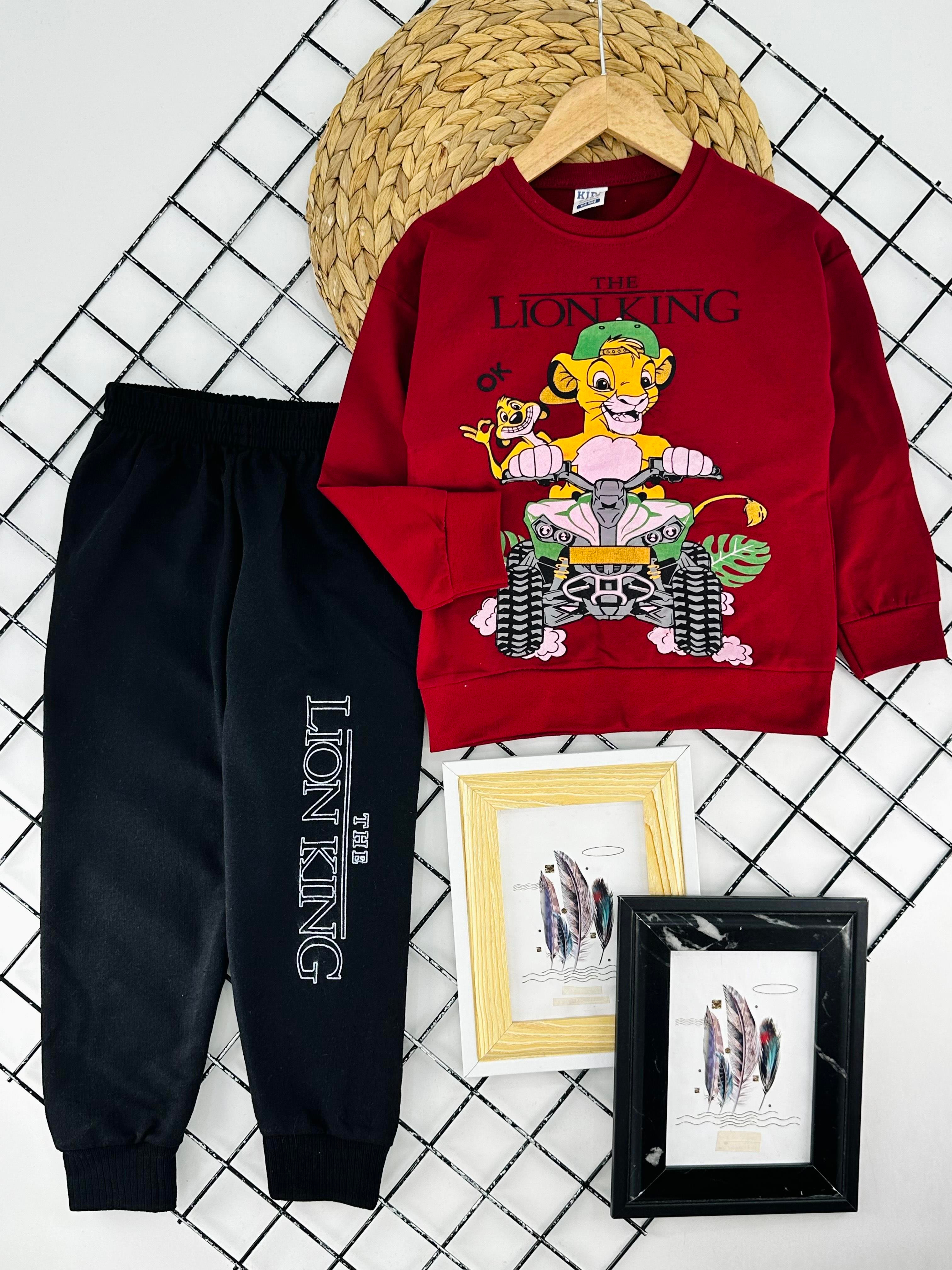 0794-4 Lıon Kng Baskılı Erkek Çocuk İki İplik Penye Takım-BORDO