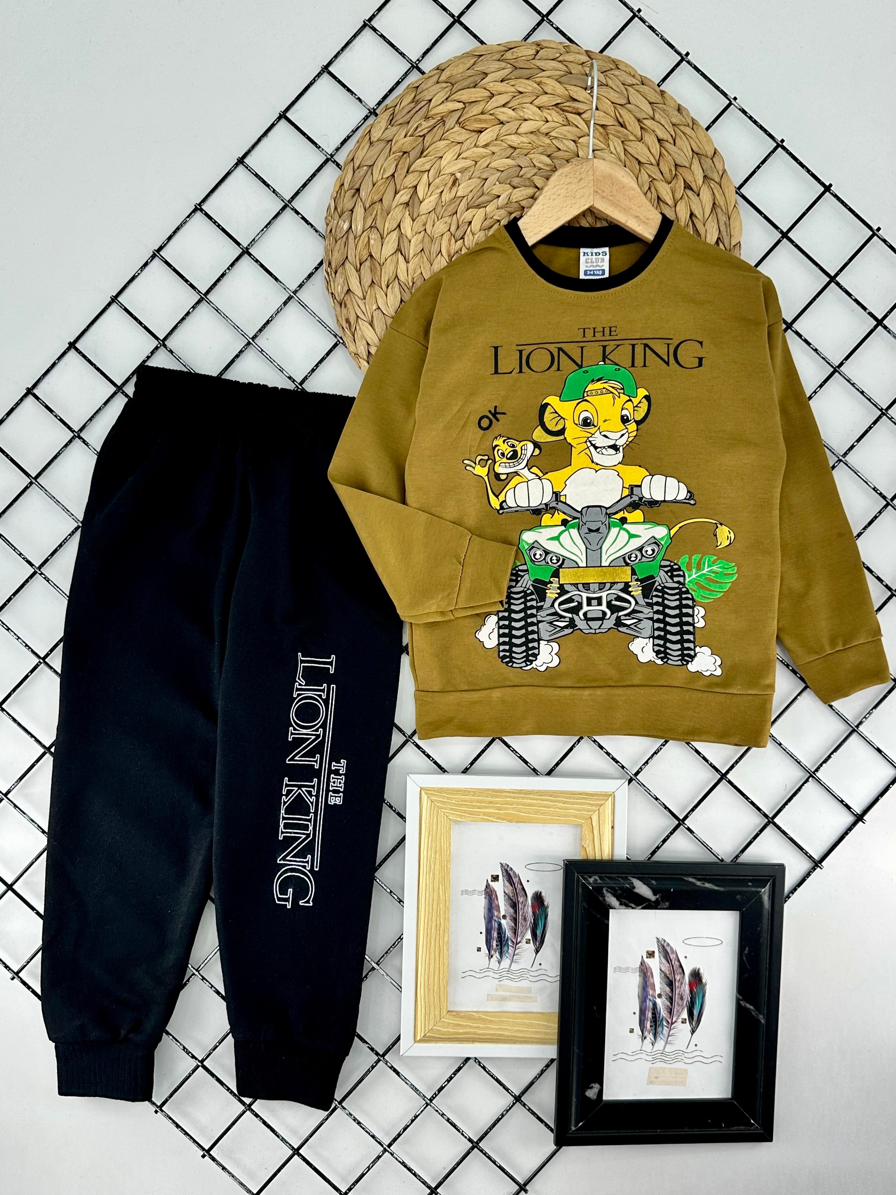 0794-4 Lıon Kng Baskılı Erkek Çocuk İki İplik Penye Takım-KAHVE