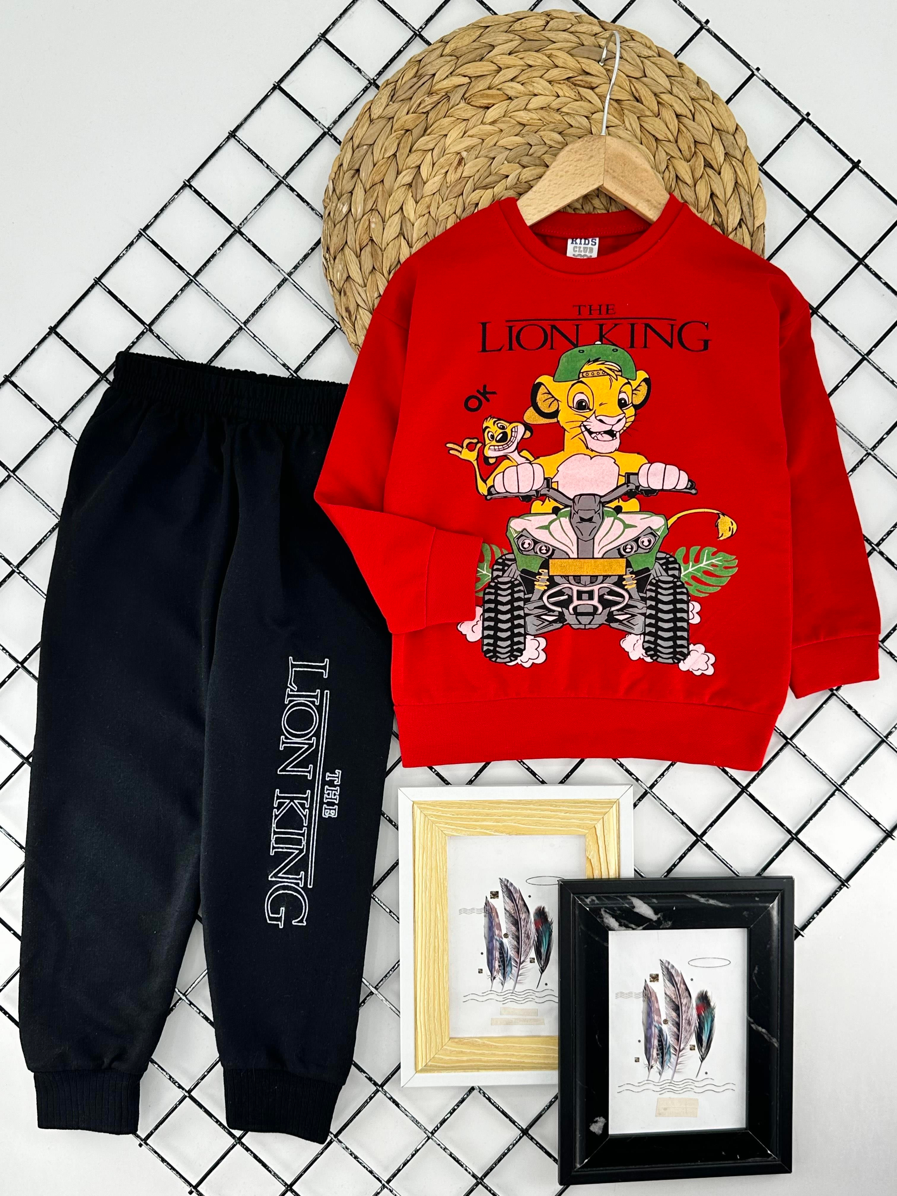 0794-4 Lıon Kng Baskılı Erkek Çocuk İki İplik Penye Takım-KIRMIZI