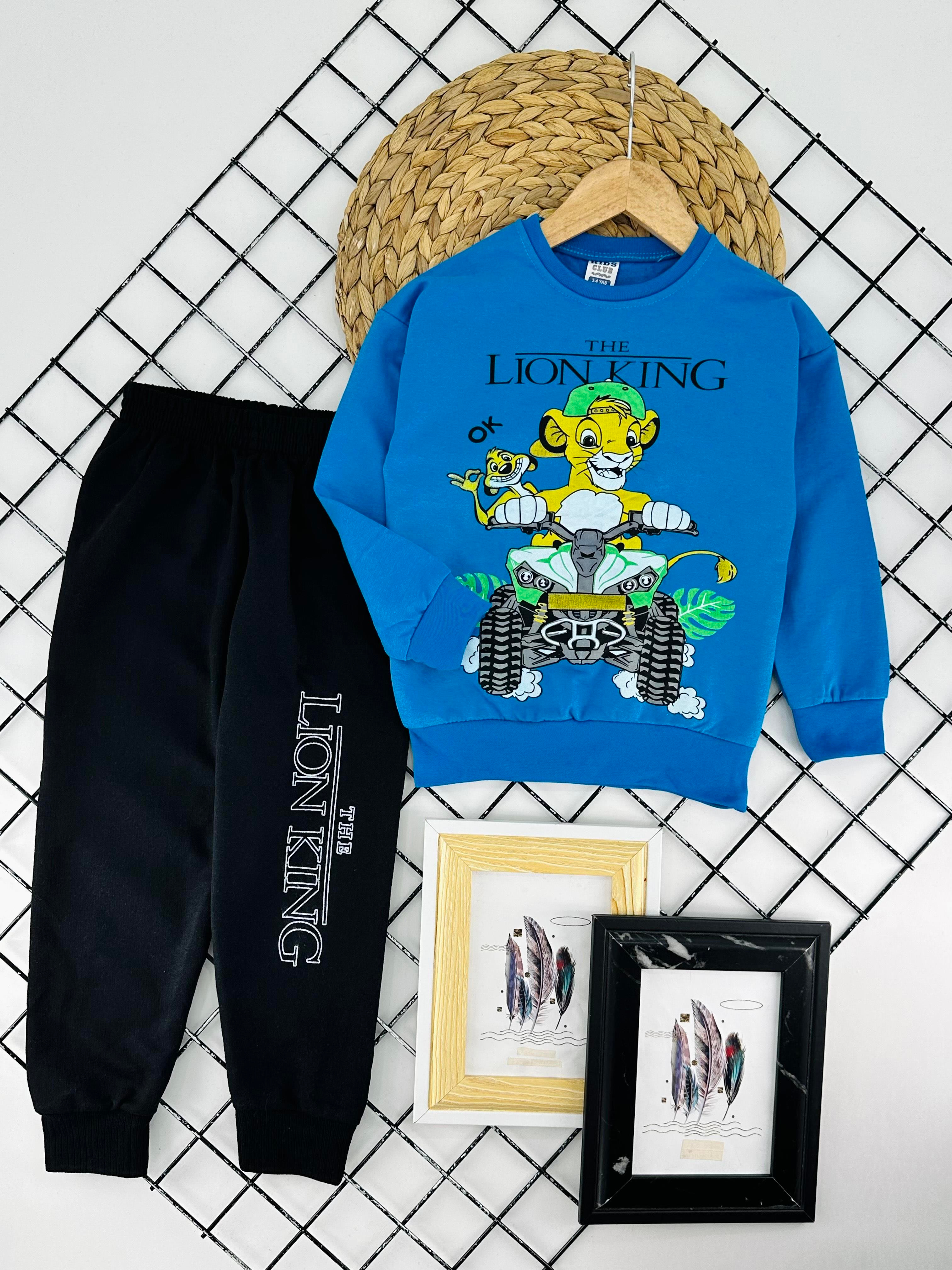 0794-4 Lıon Kng Baskılı Erkek Çocuk İki İplik Penye Takım-MAVİ