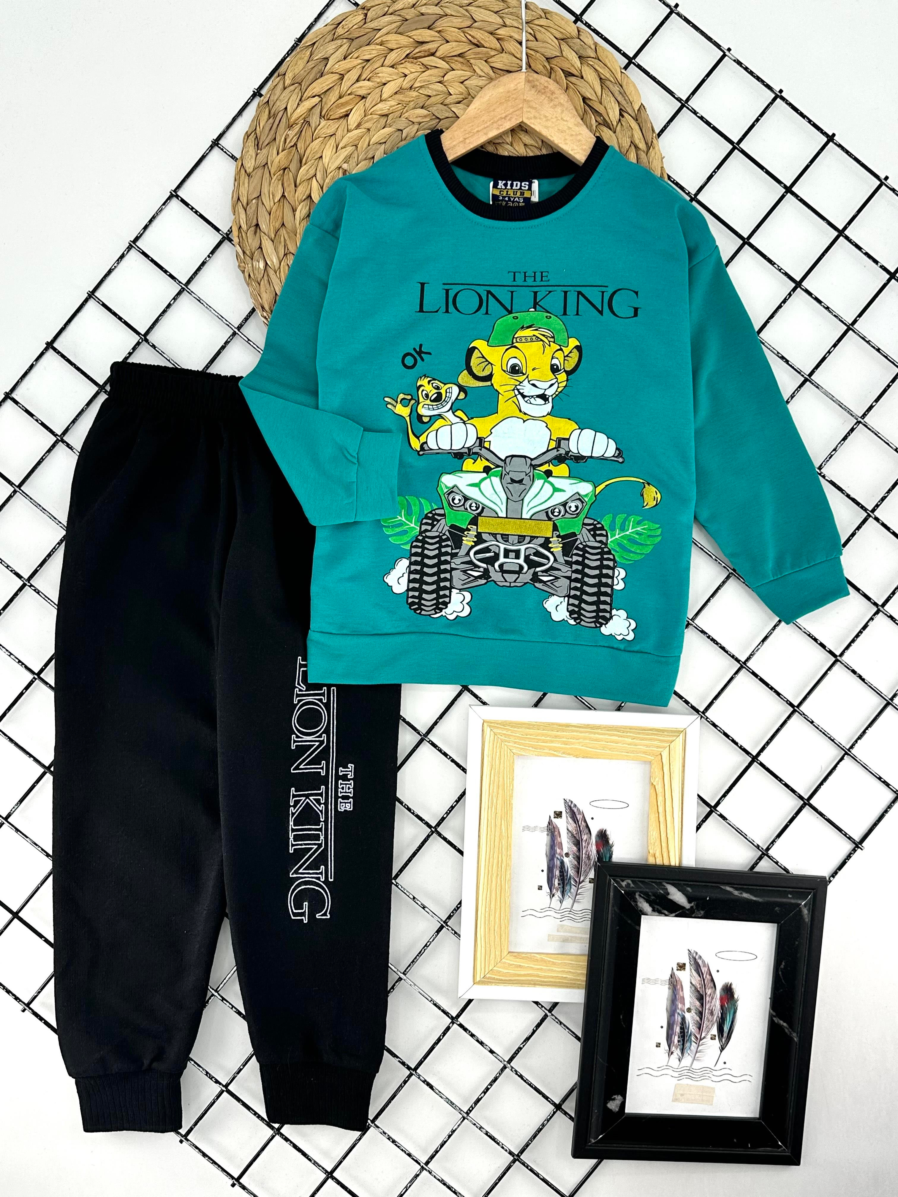 0794-4 Lıon Kng Baskılı Erkek Çocuk İki İplik Penye Takım-MİNT YEŞİL