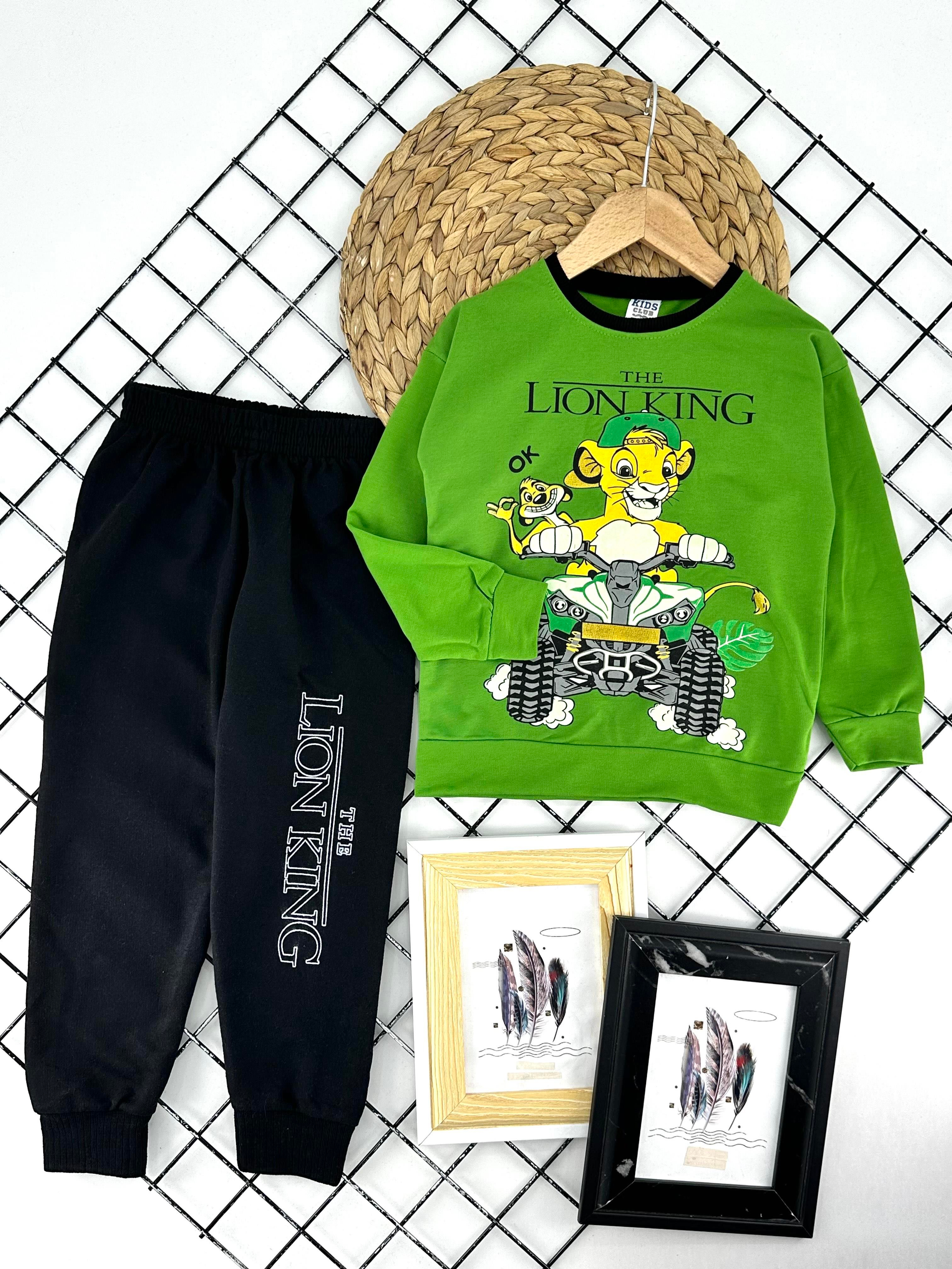 0794-4 Lıon Kng Baskılı Erkek Çocuk İki İplik Penye Takım-YEŞİL
