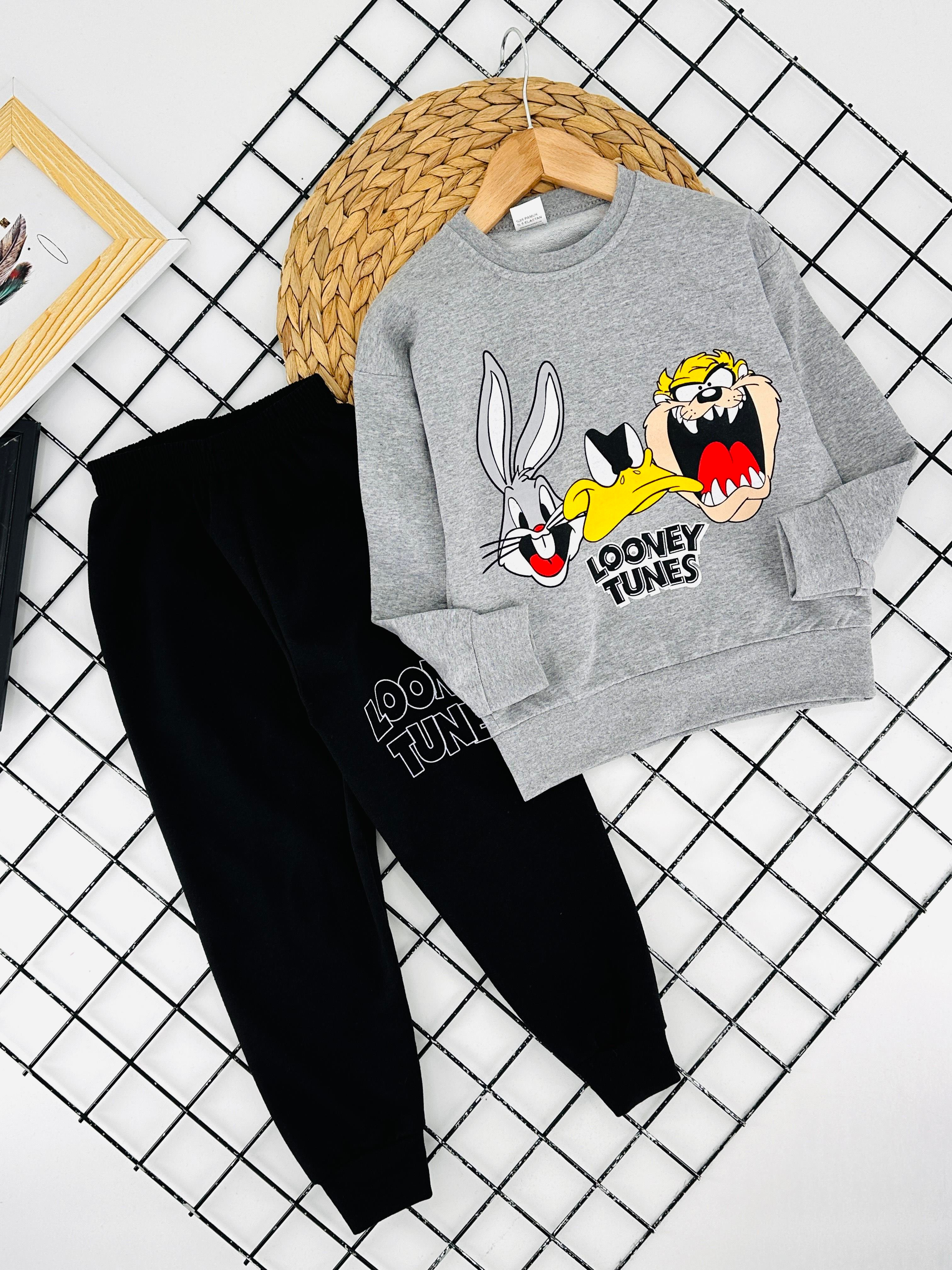 0794 Loney Tunes Baskılı İki İplik Penye Erkek Çocuk Takım-GRİ