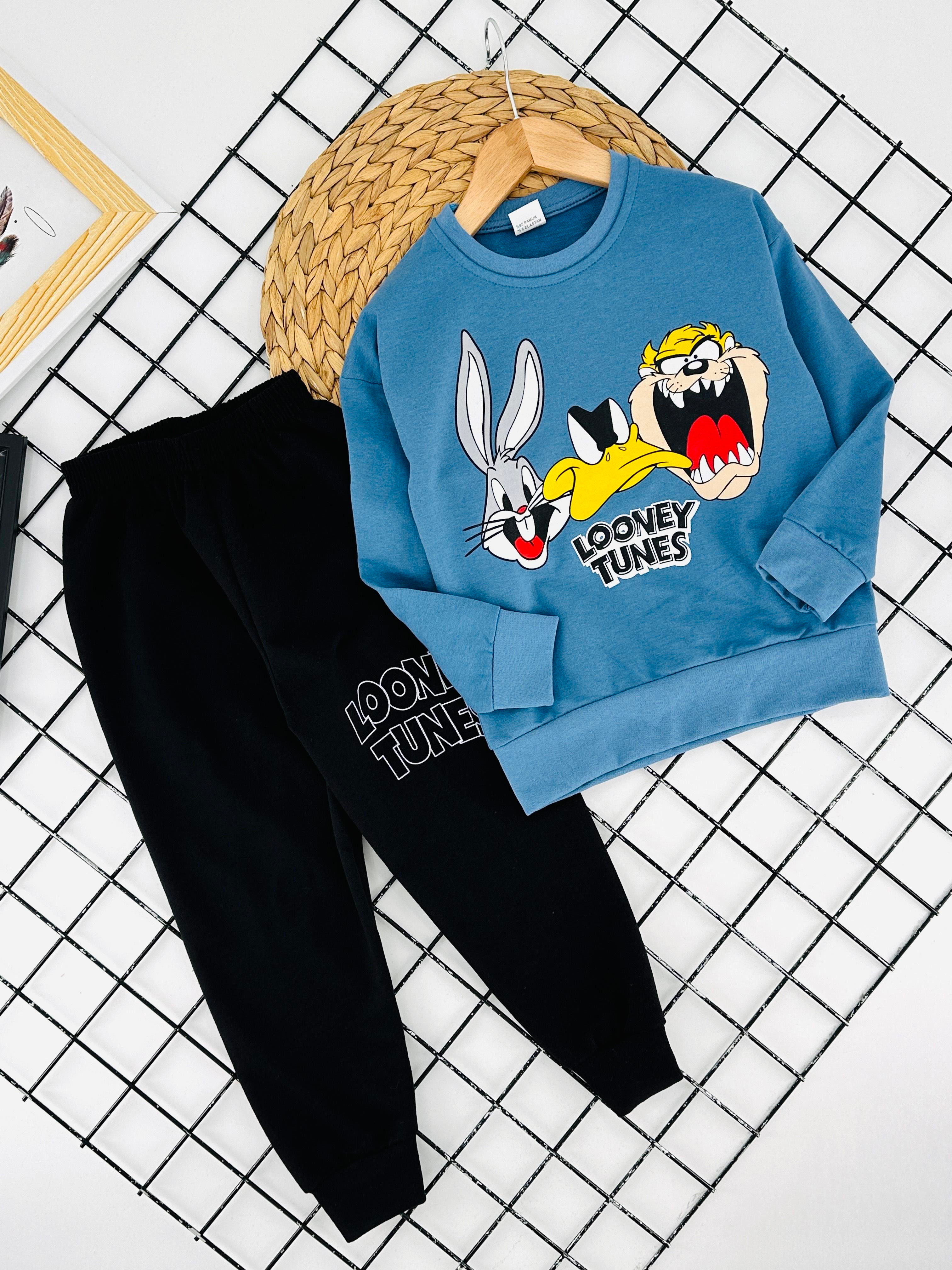 0794 Loney Tunes Baskılı İki İplik Penye Erkek Çocuk Takım-PETROL MAVİ