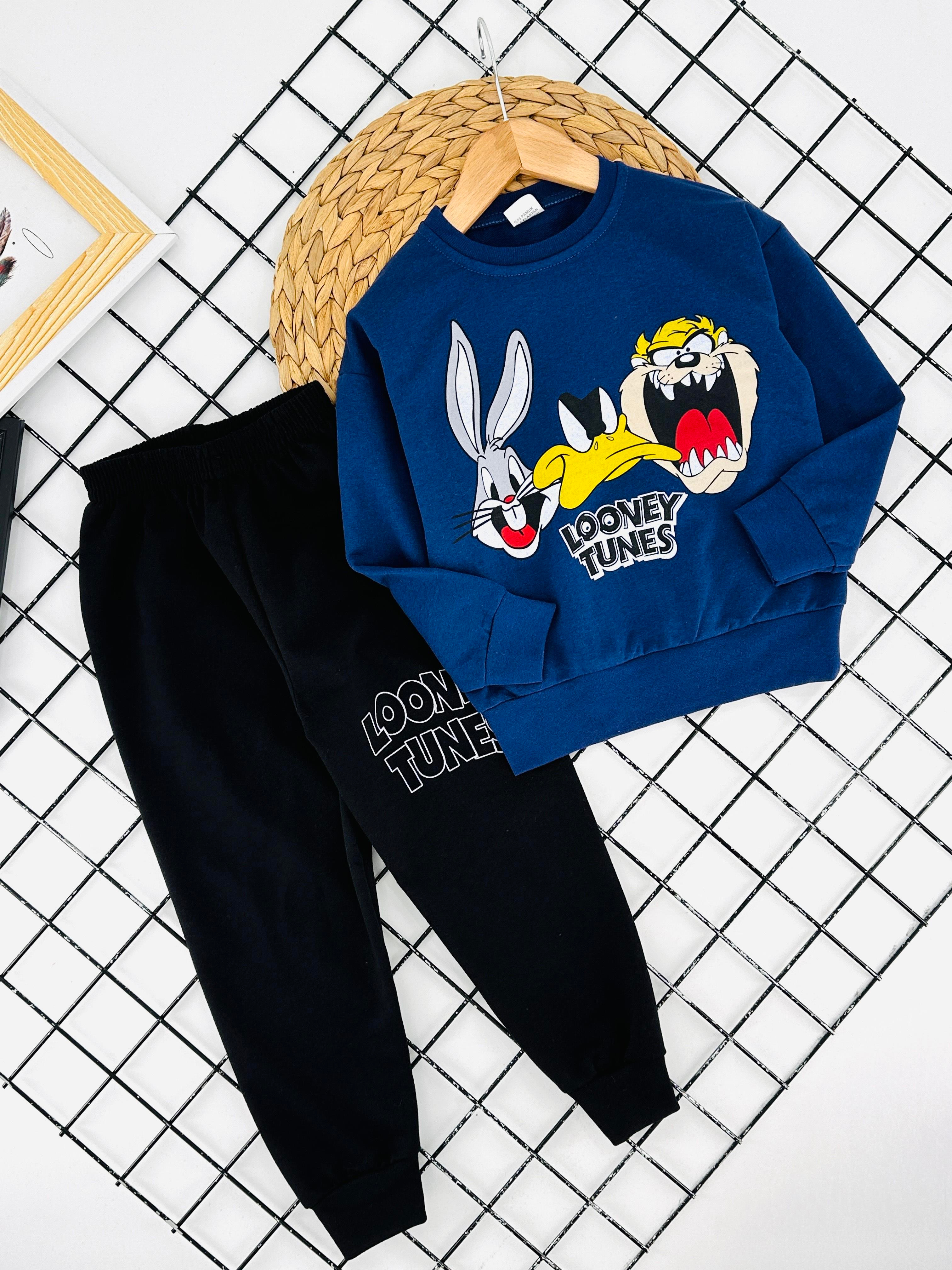 0794 Loney Tunes Baskılı İki İplik Penye Erkek Çocuk Takım-SAKS MAVİ