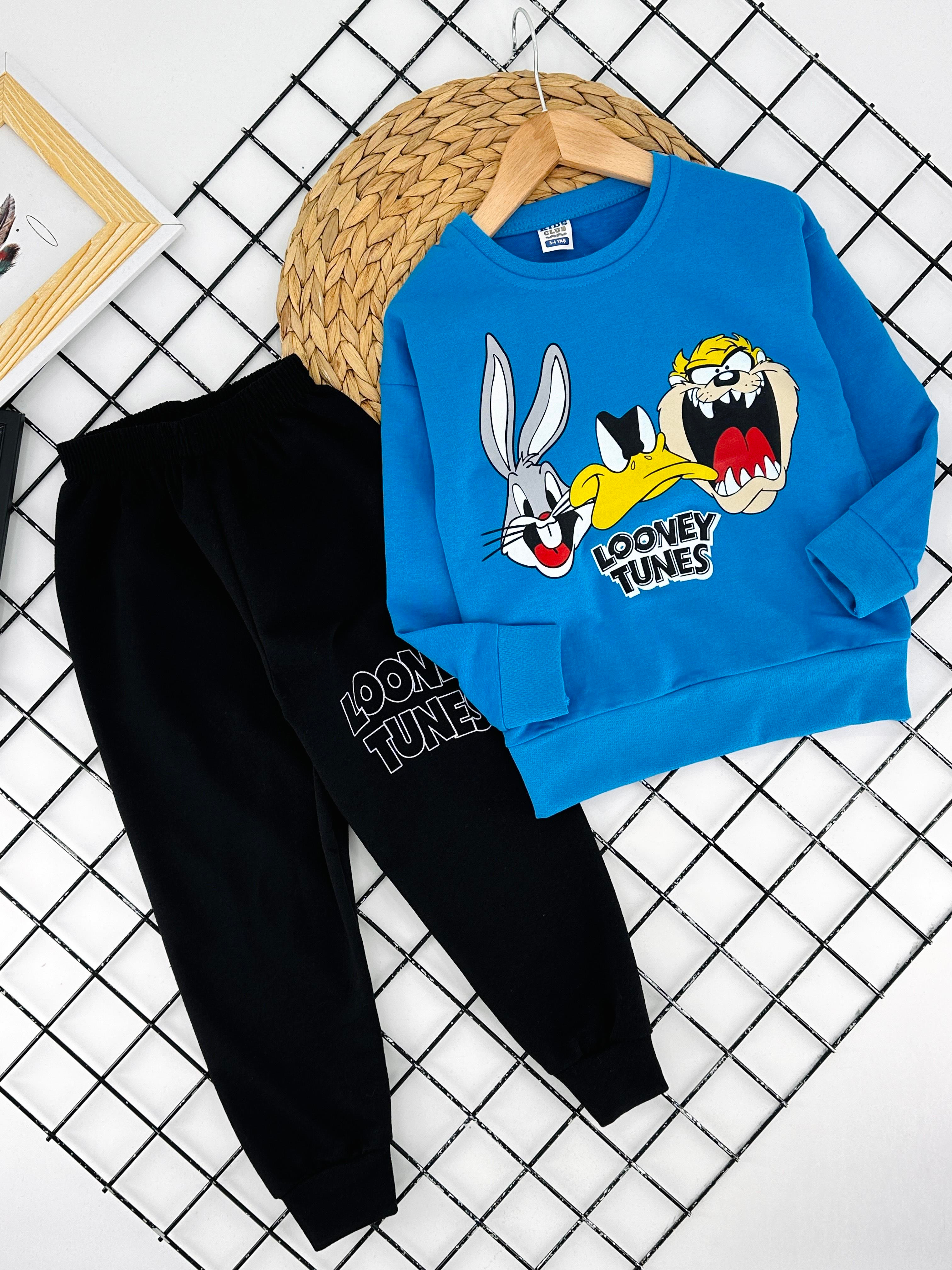 0794 Loney Tunes Baskılı İki İplik Penye Erkek Çocuk Takım-TURKUAZ