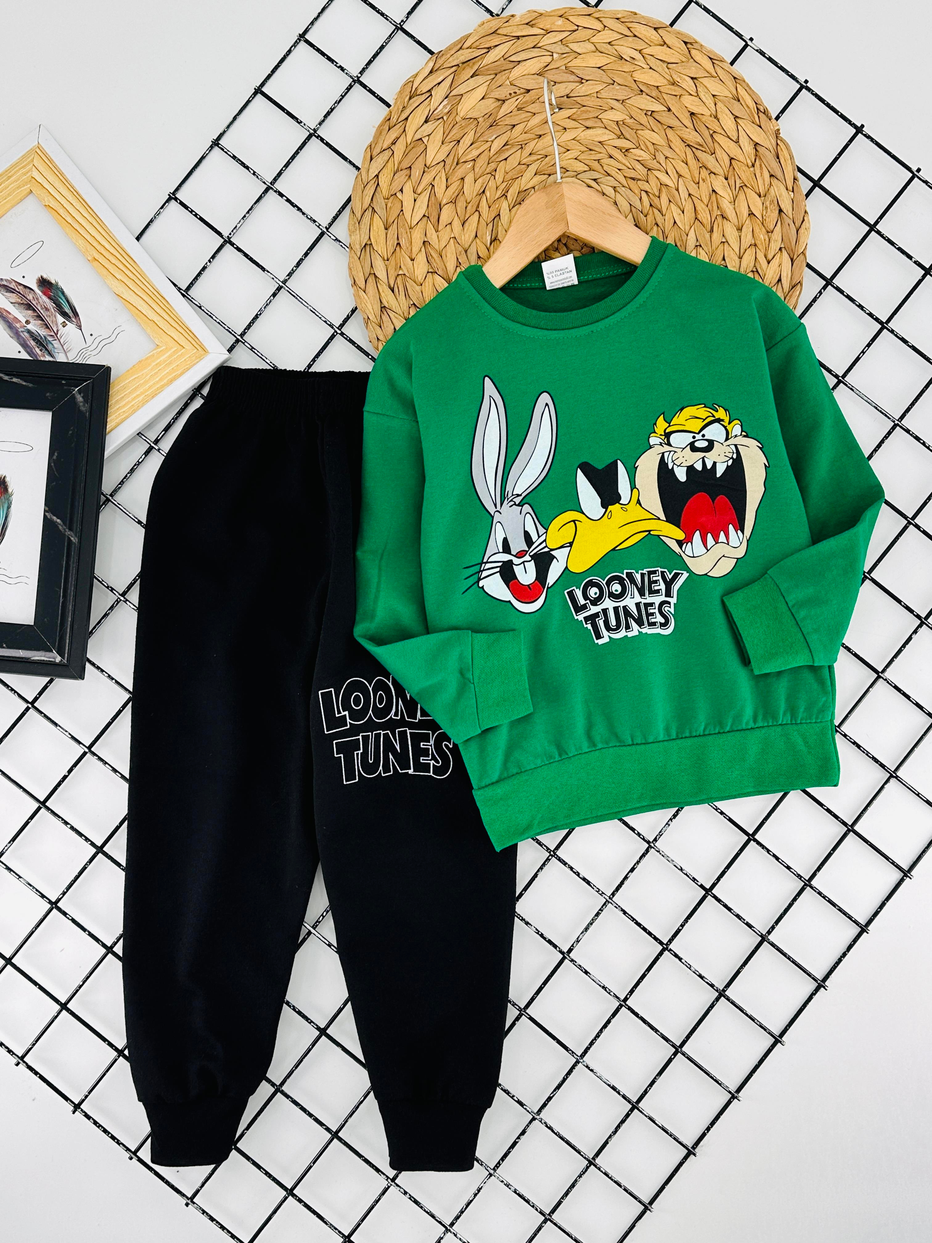 0794 Loney Tunes Baskılı İki İplik Penye Erkek Çocuk Takım-YEŞİL