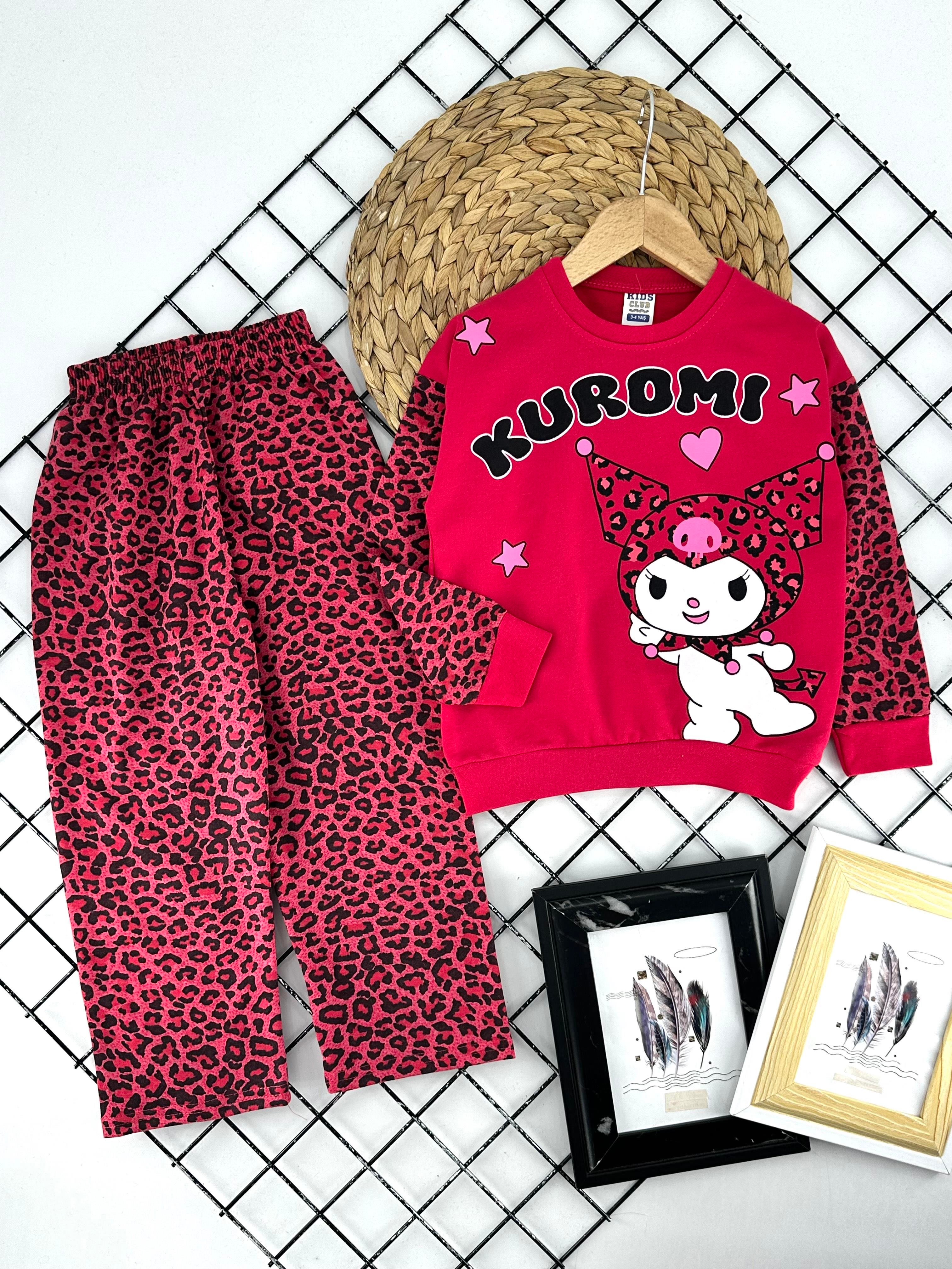 0799-2 Krm Baskılı Kalp Baskılı Kız Çocuk İki İplik Penye Takım-FUŞYA