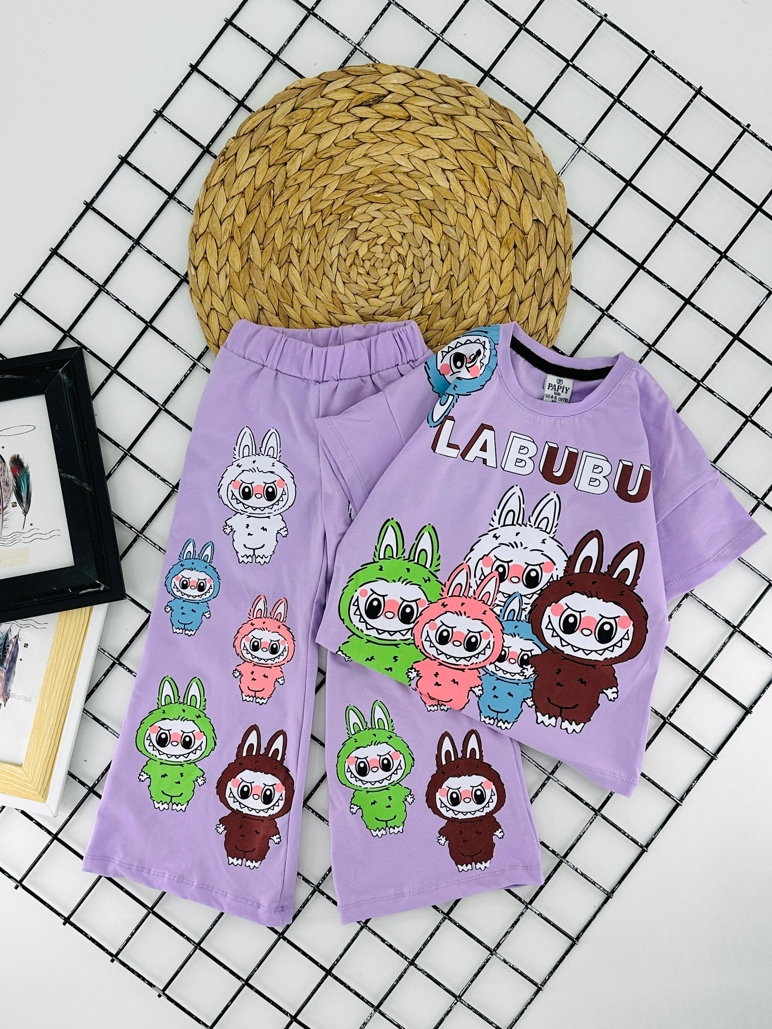0800-3 Lbb Baskılı Kız Çocuk Penye Pantolonlu Takım-LİLA