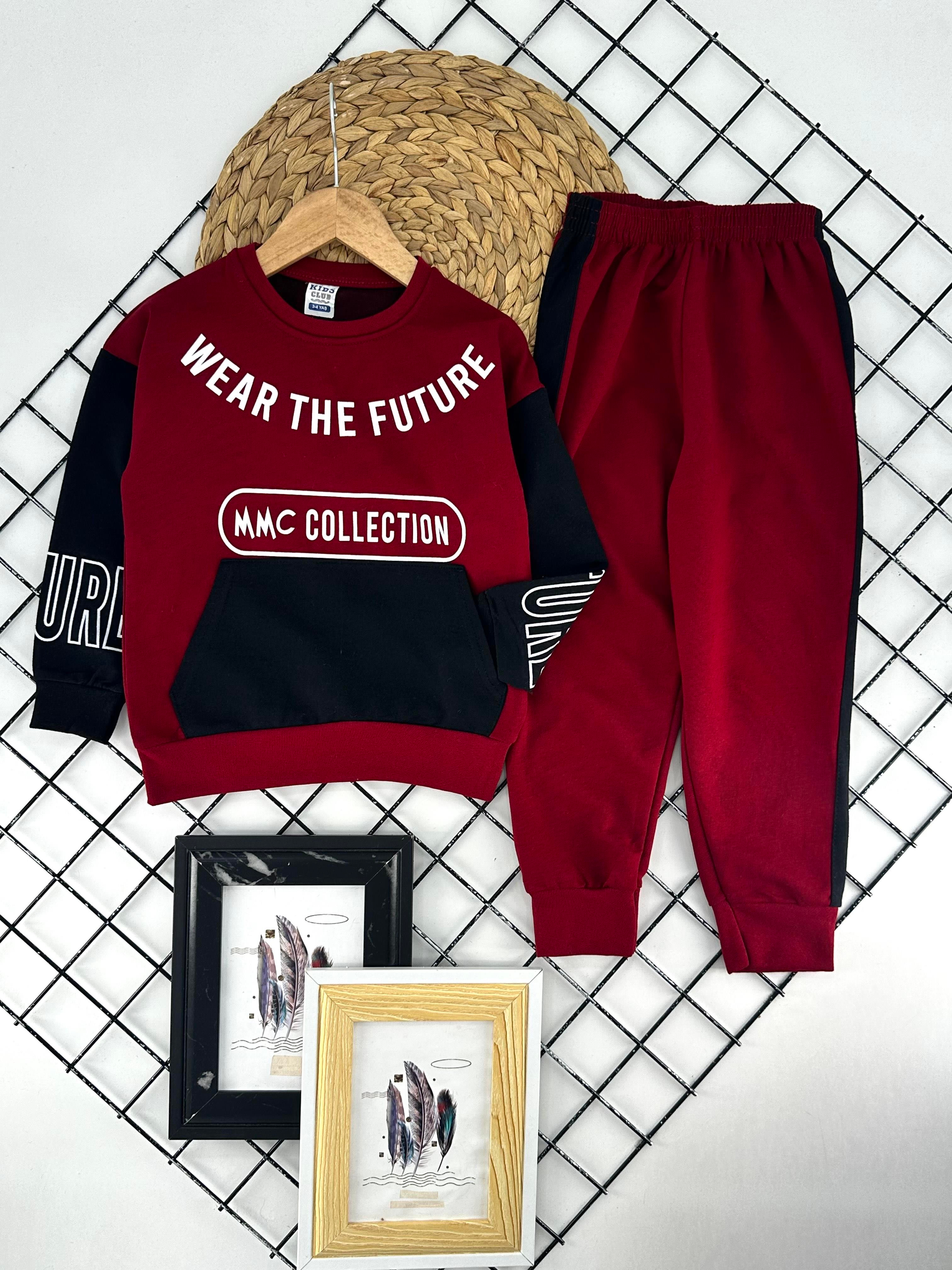 0929 Wear The Yazılı Erkek Çocuk Penye İki İplik Takım-BORDO