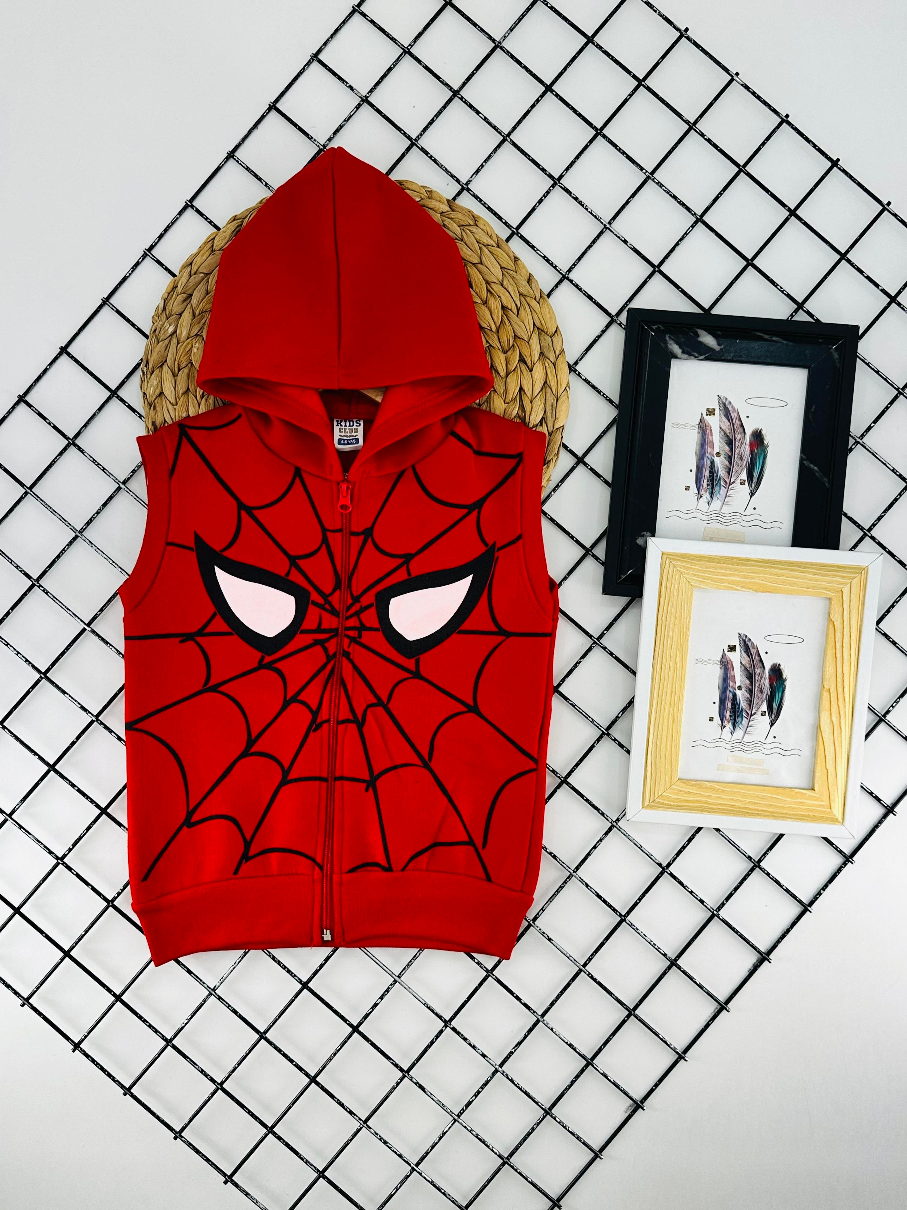 0931-1 Örümcek Adm Baskılı Erkek Çocuk Üç İplik Şardonlu Yelek-KIRMIZI