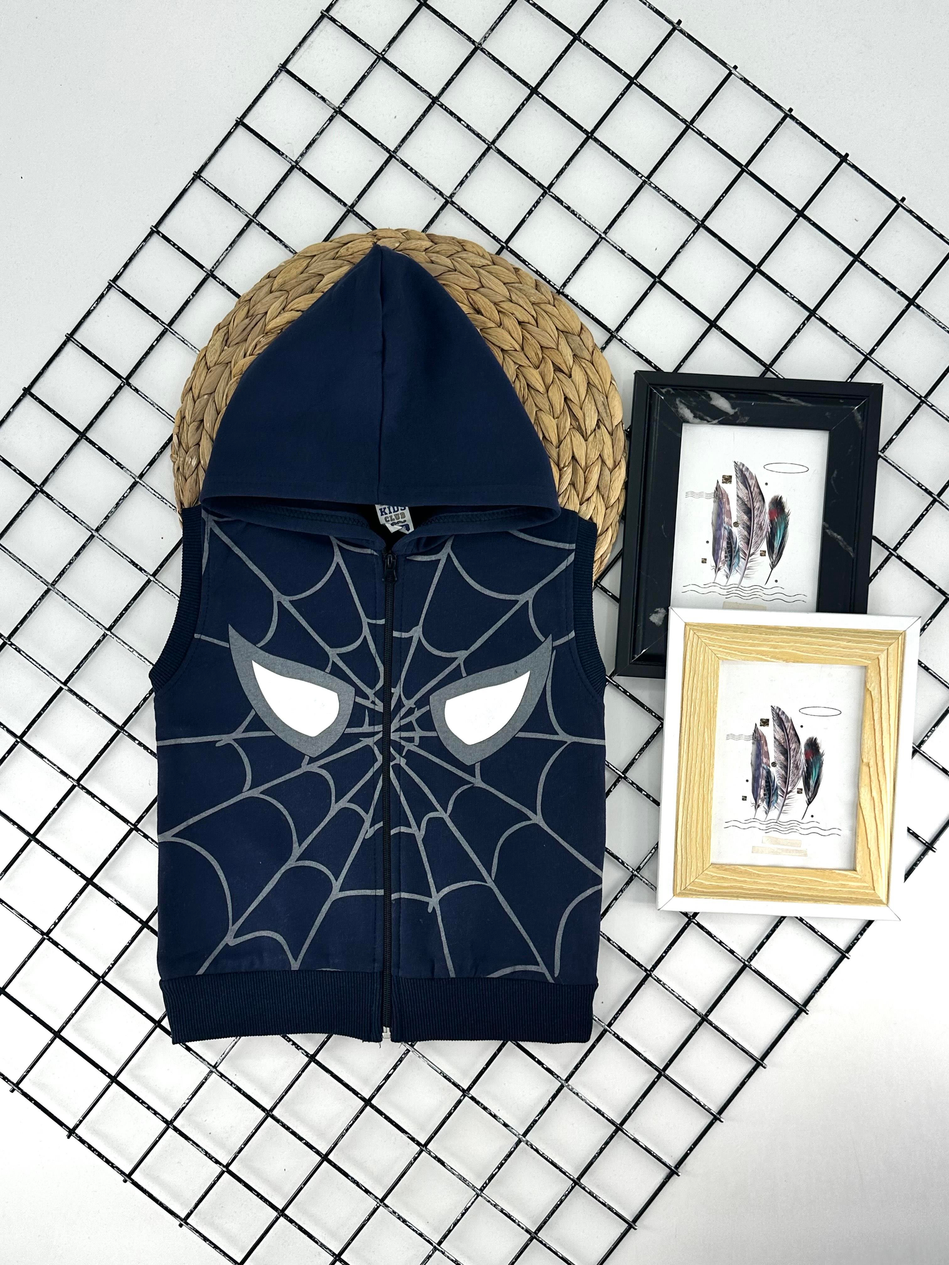 0931-1 Örümcek Adm Baskılı Erkek Çocuk Üç İplik Şardonlu Yelek-LACİVERT