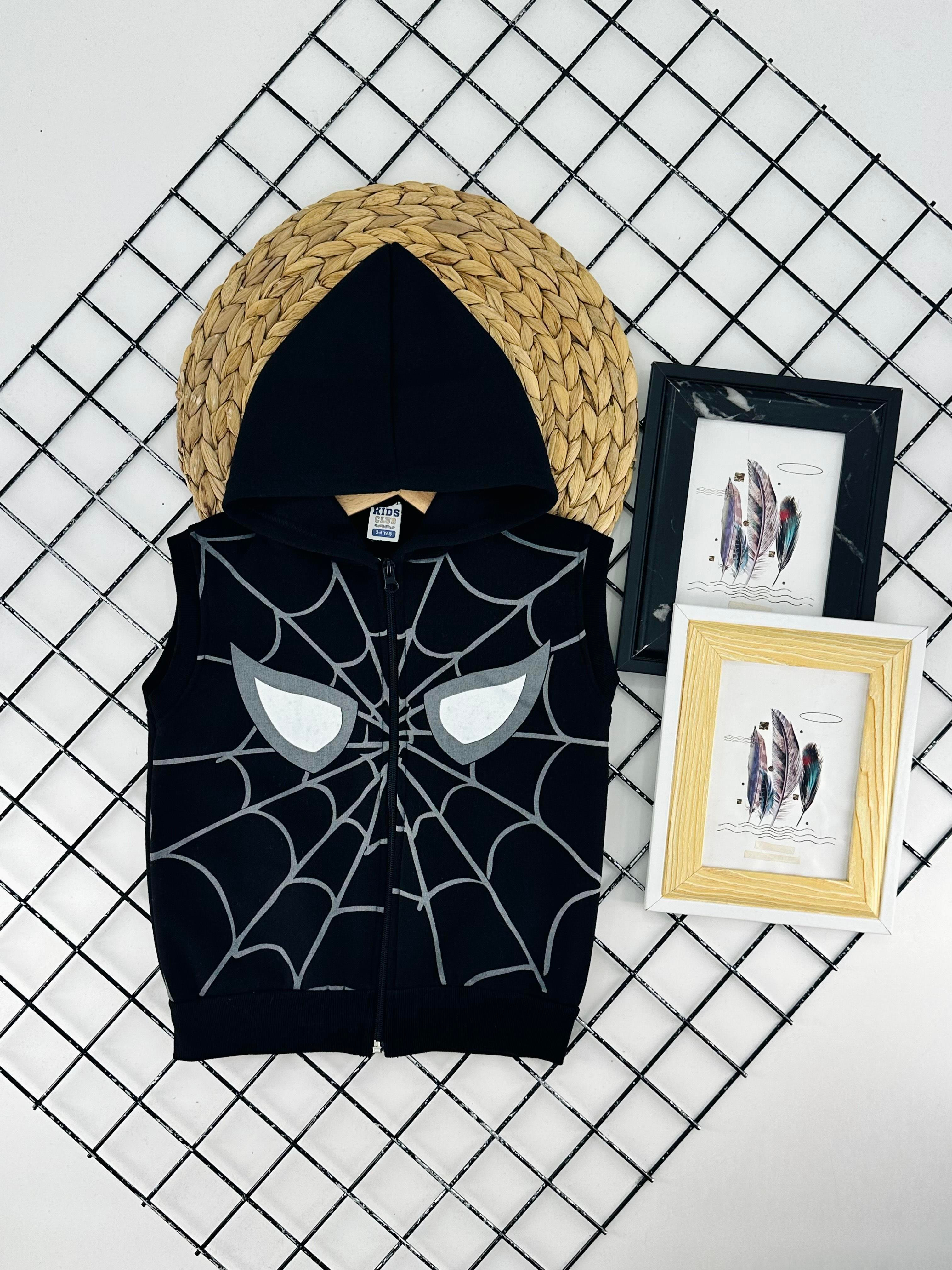 0931-1 Örümcek Adm Baskılı Erkek Çocuk Üç İplik Şardonlu Yelek-SİYAH