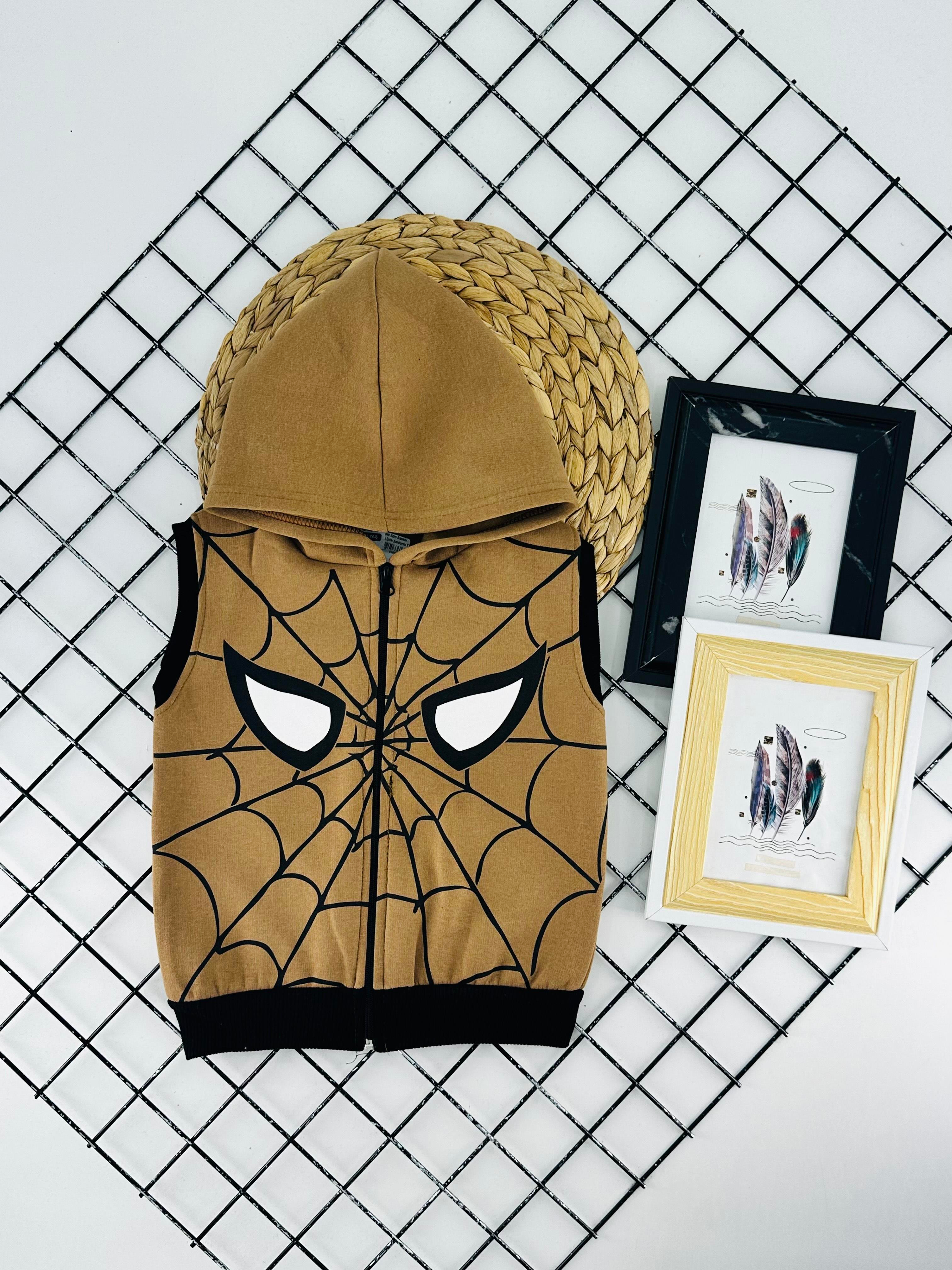 0931-1 Örümcek Adm Baskılı Erkek Çocuk Üç İplik Şardonlu Yelek-TABA