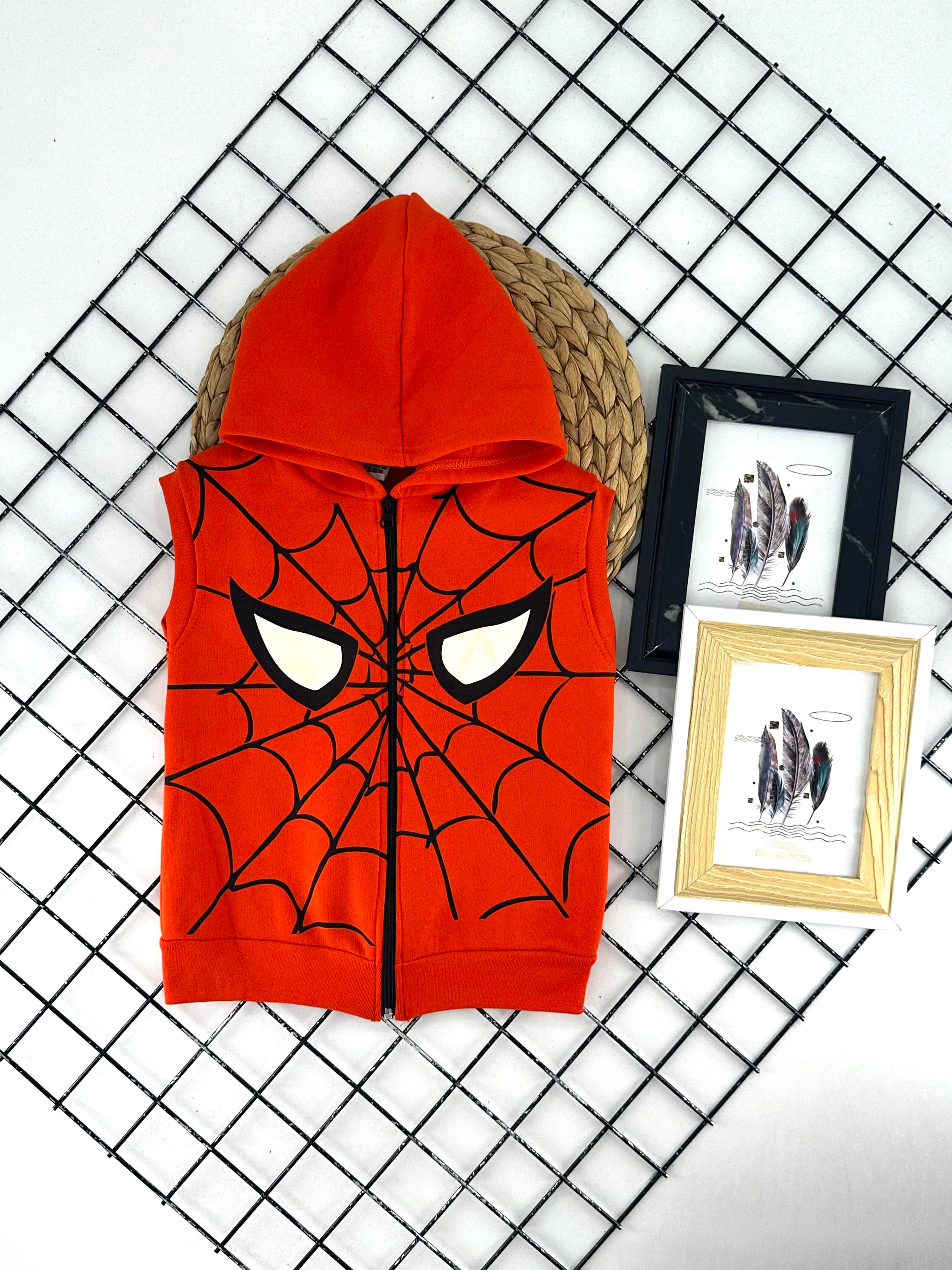 0931-1 Örümcek Adm Baskılı Erkek Çocuk Üç İplik Şardonlu Yelek-TURUNCU