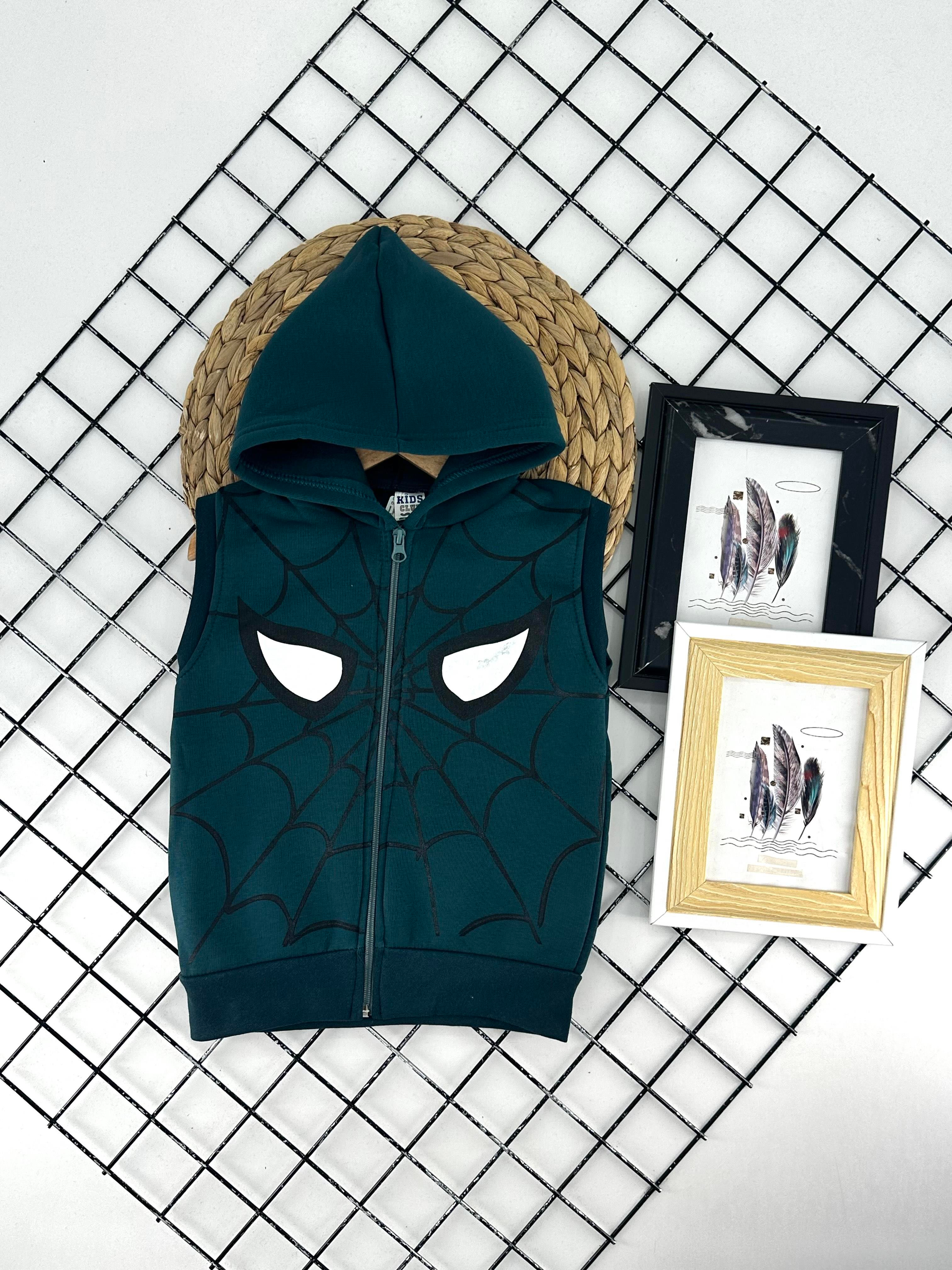 0931-1 Örümcek Adm Baskılı Erkek Çocuk Üç İplik Şardonlu Yelek-ZÜMRÜT YEŞİL