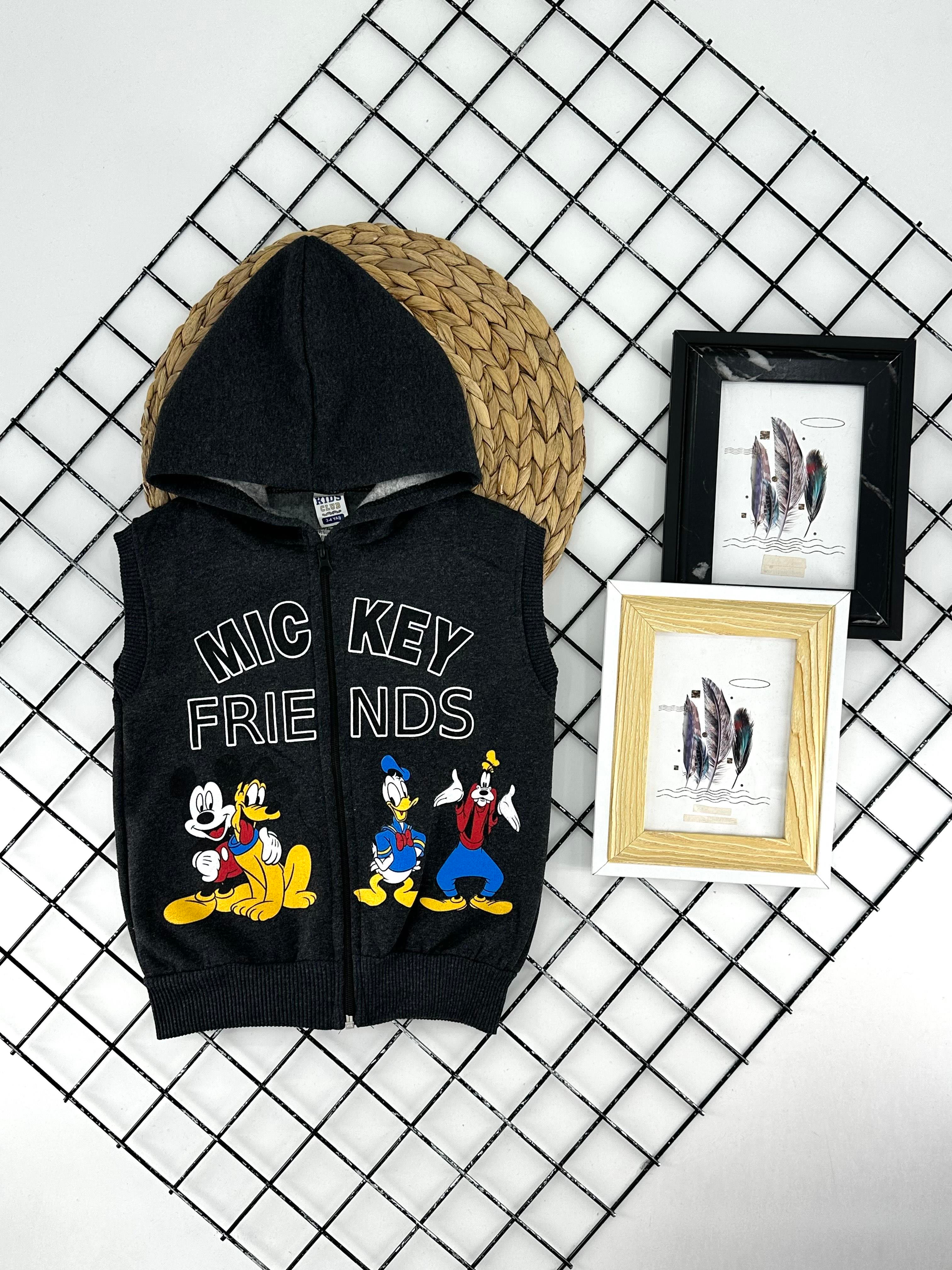 0931 Mcky Baskılı Yazılı Erkek Çocuk Üç İplik Şardonlu Yelek-ANTRASİT