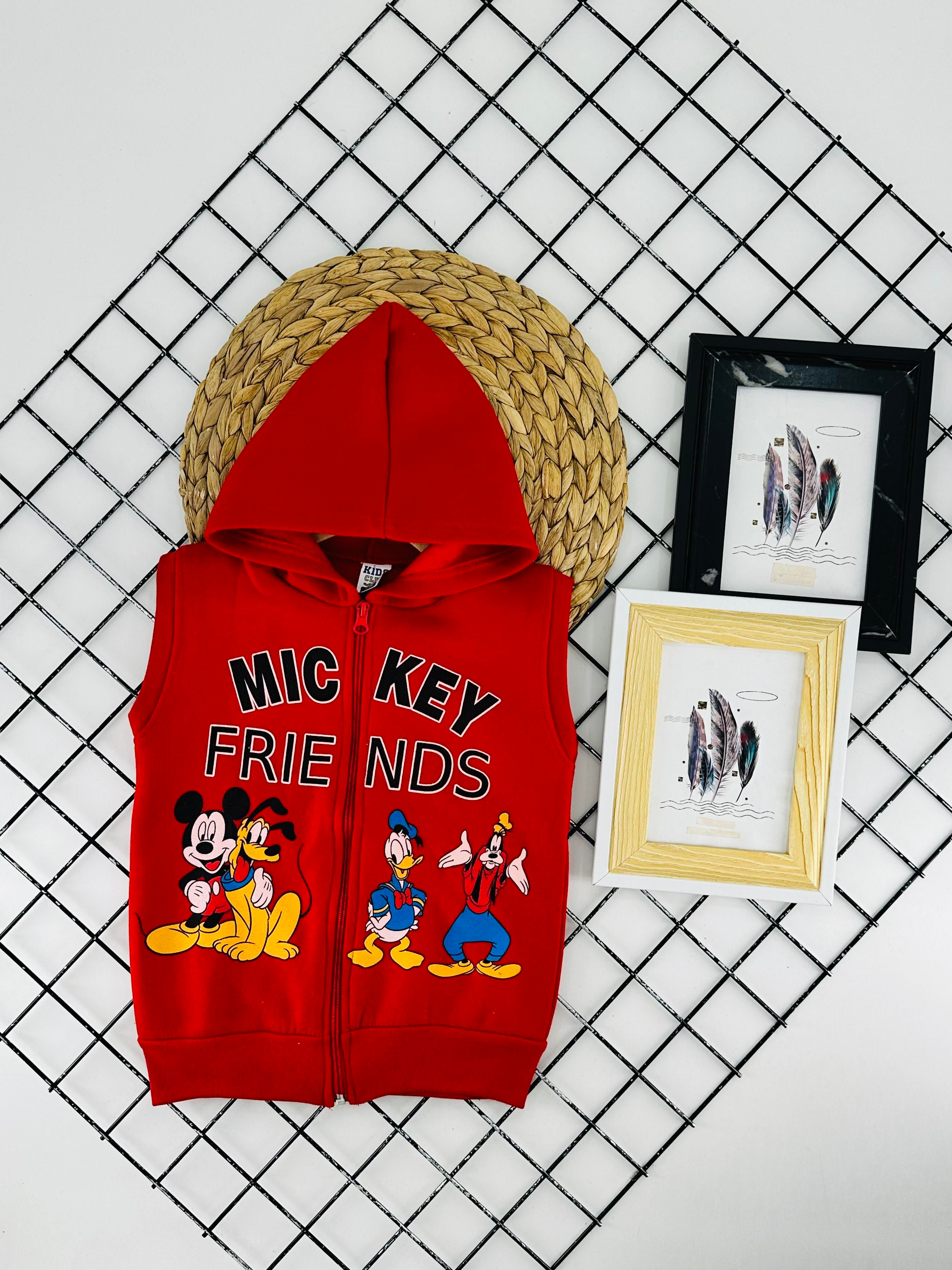 0931 Mcky Baskılı Yazılı Erkek Çocuk Üç İplik Şardonlu Yelek-KIRMIZI