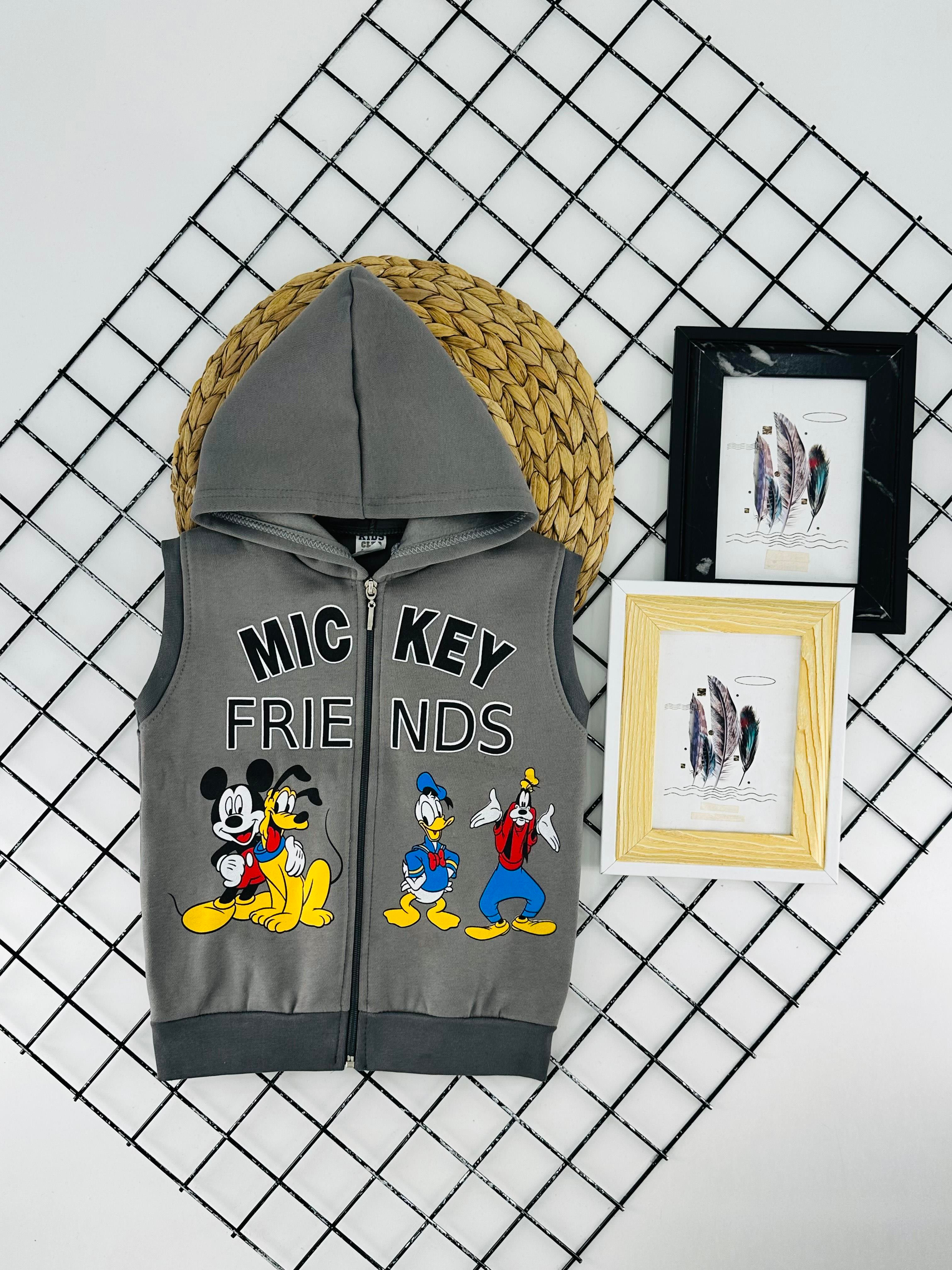 0931 Mcky Baskılı Yazılı Erkek Çocuk Üç İplik Şardonlu Yelek-KOYU GRİ