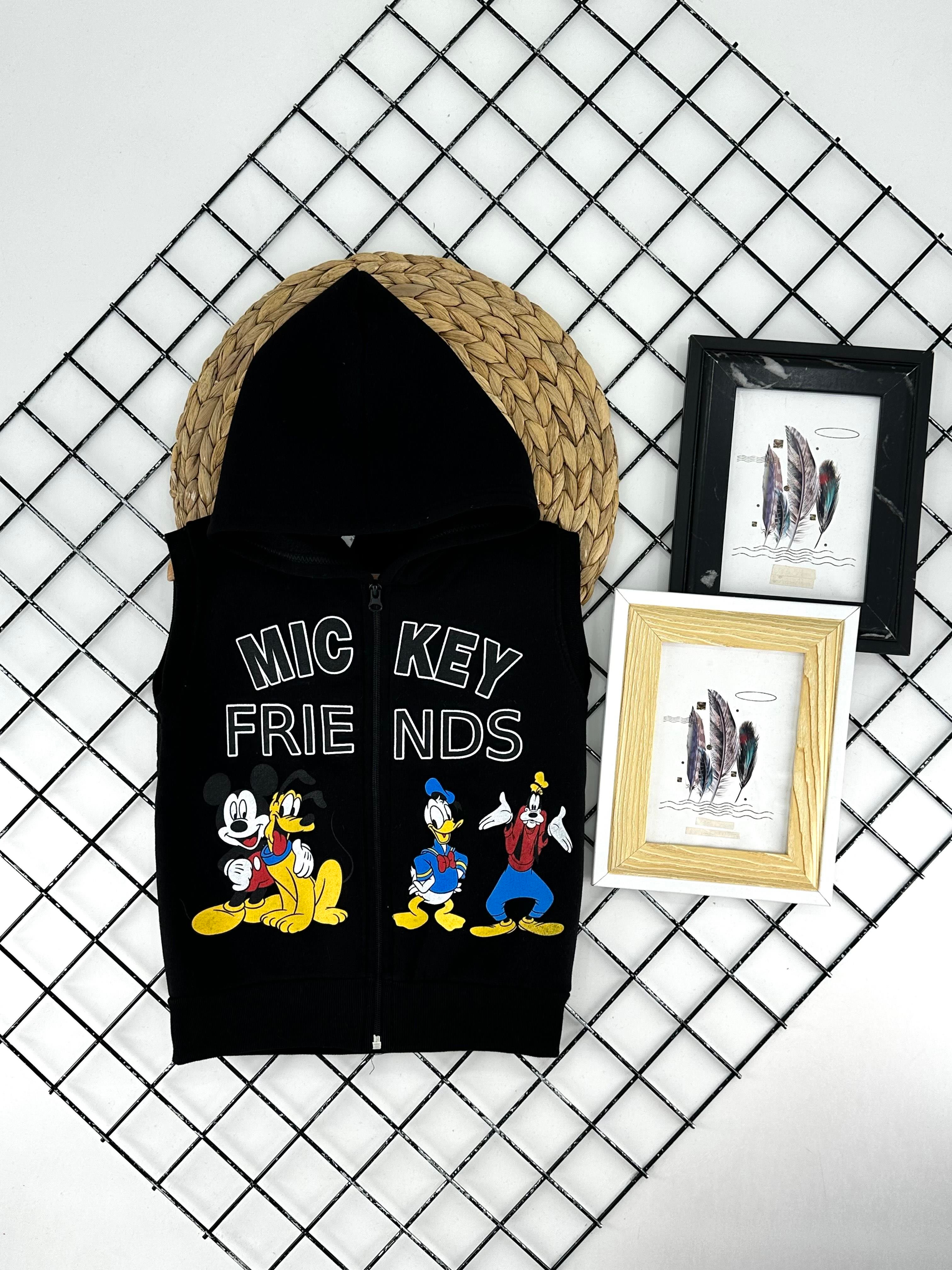 0931 Mcky Baskılı Yazılı Erkek Çocuk Üç İplik Şardonlu Yelek-SİYAH