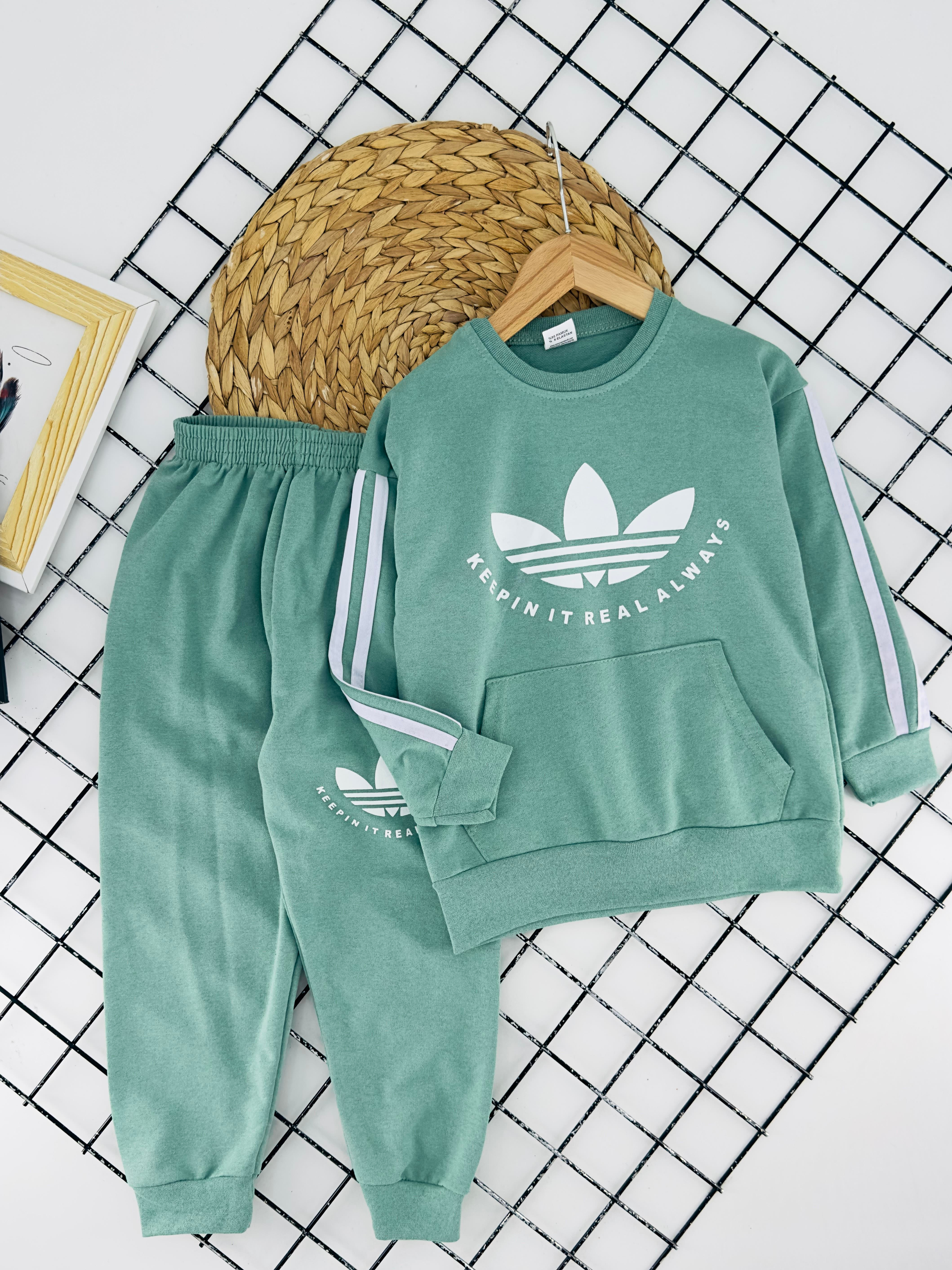 0981-1 Adds Yazılı Ortası Baskılı Erkek Çocuk İki İplik Penye Takım-YEŞİL