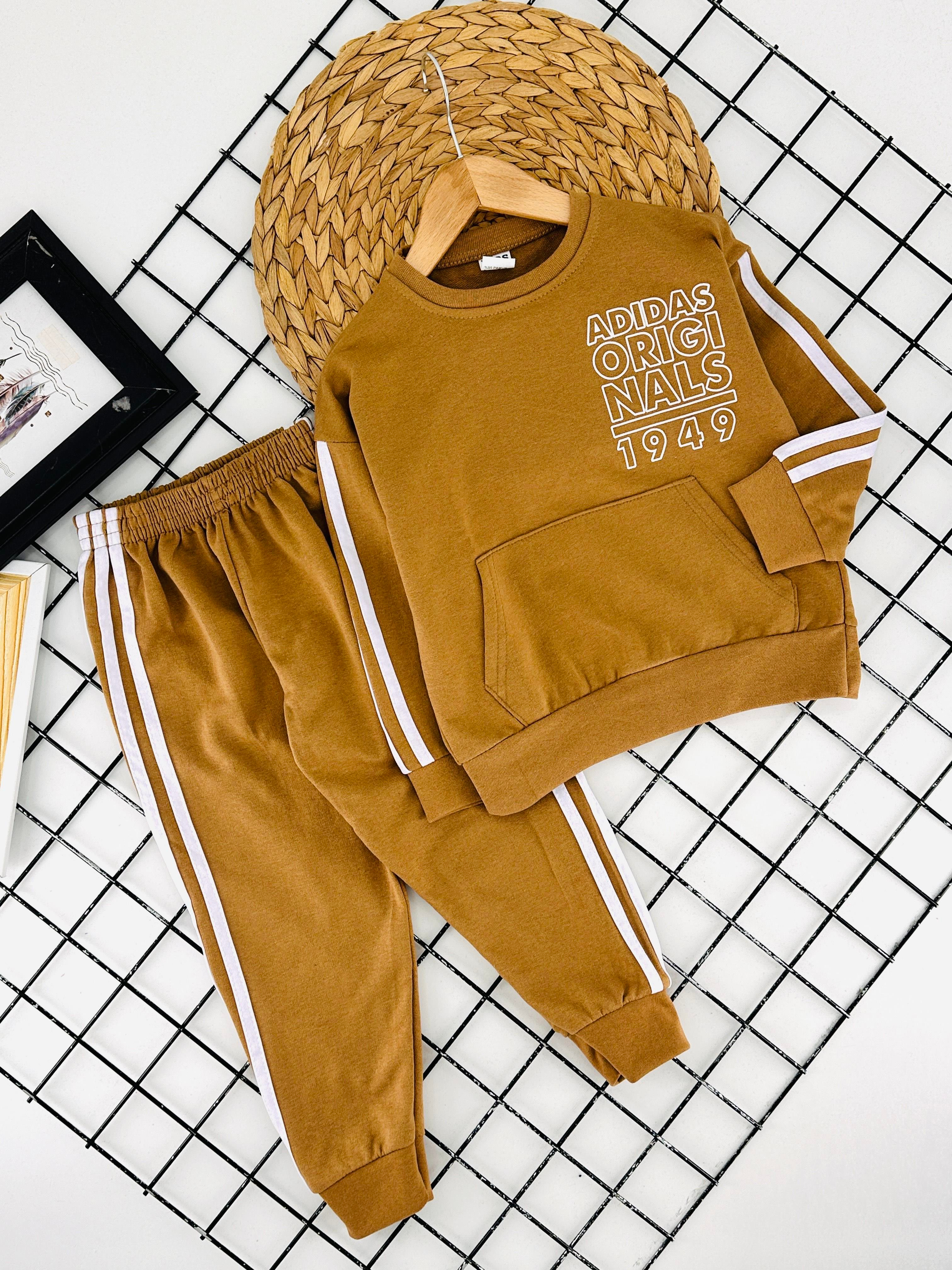0981 Adds Orgınals Yazılı Yanları Şeritli İki İplik Penye Takım-BEJ