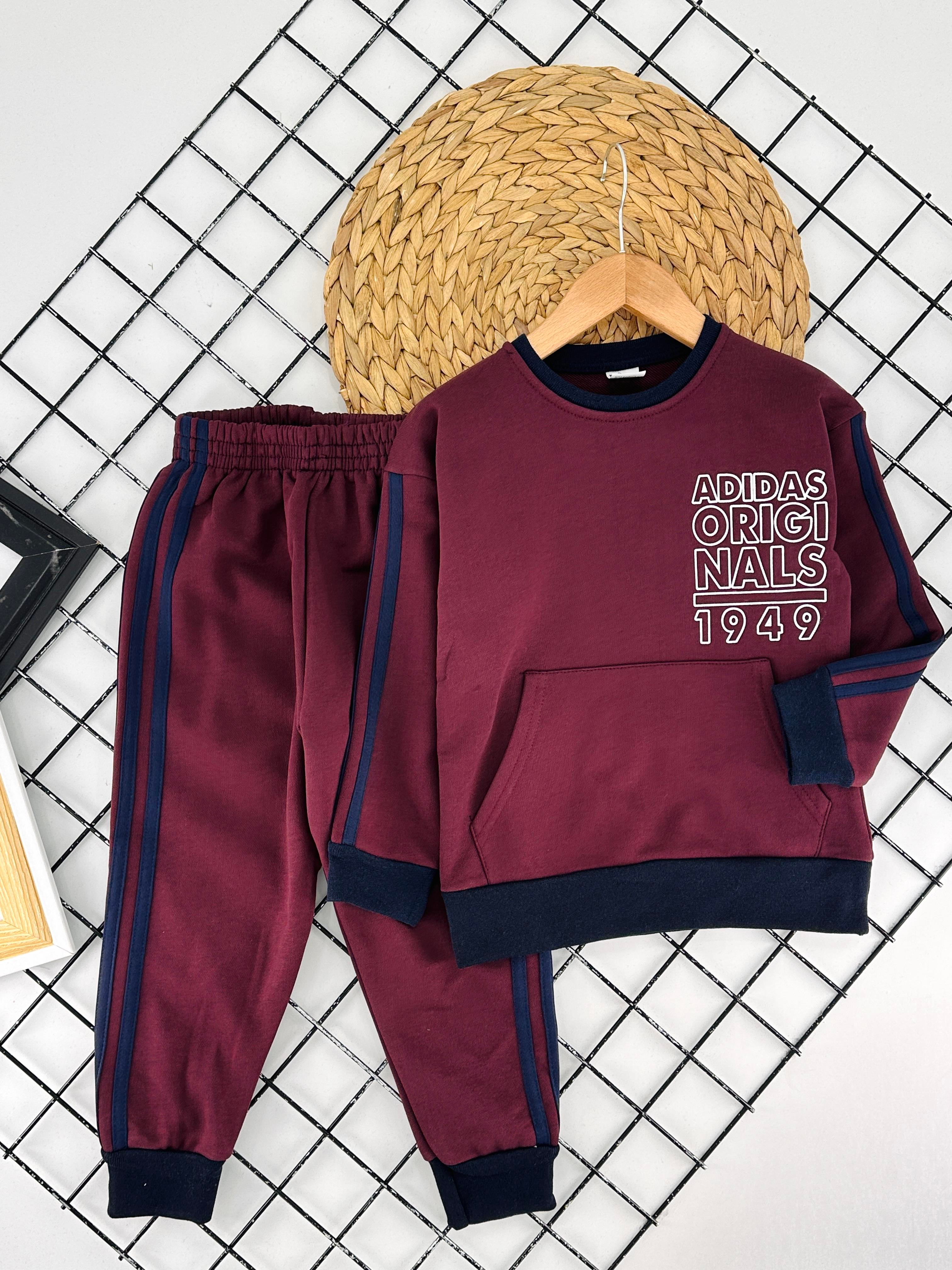 0981 Adds Orgınals Yazılı Yanları Şeritli İki İplik Penye Takım-BORDO