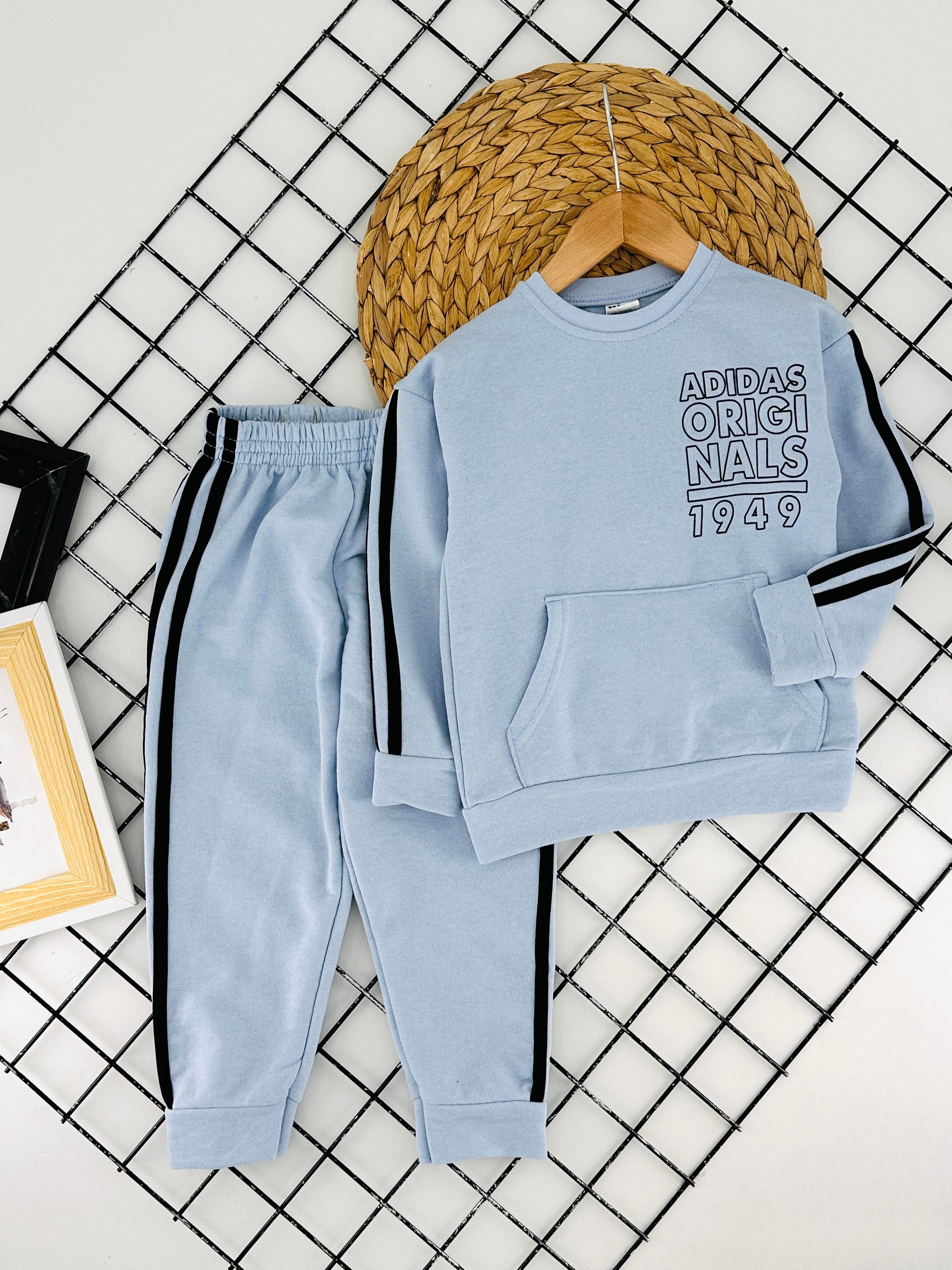 0981 Adds Orgınals Yazılı Yanları Şeritli İki İplik Penye Takım-BUZ MAVİ