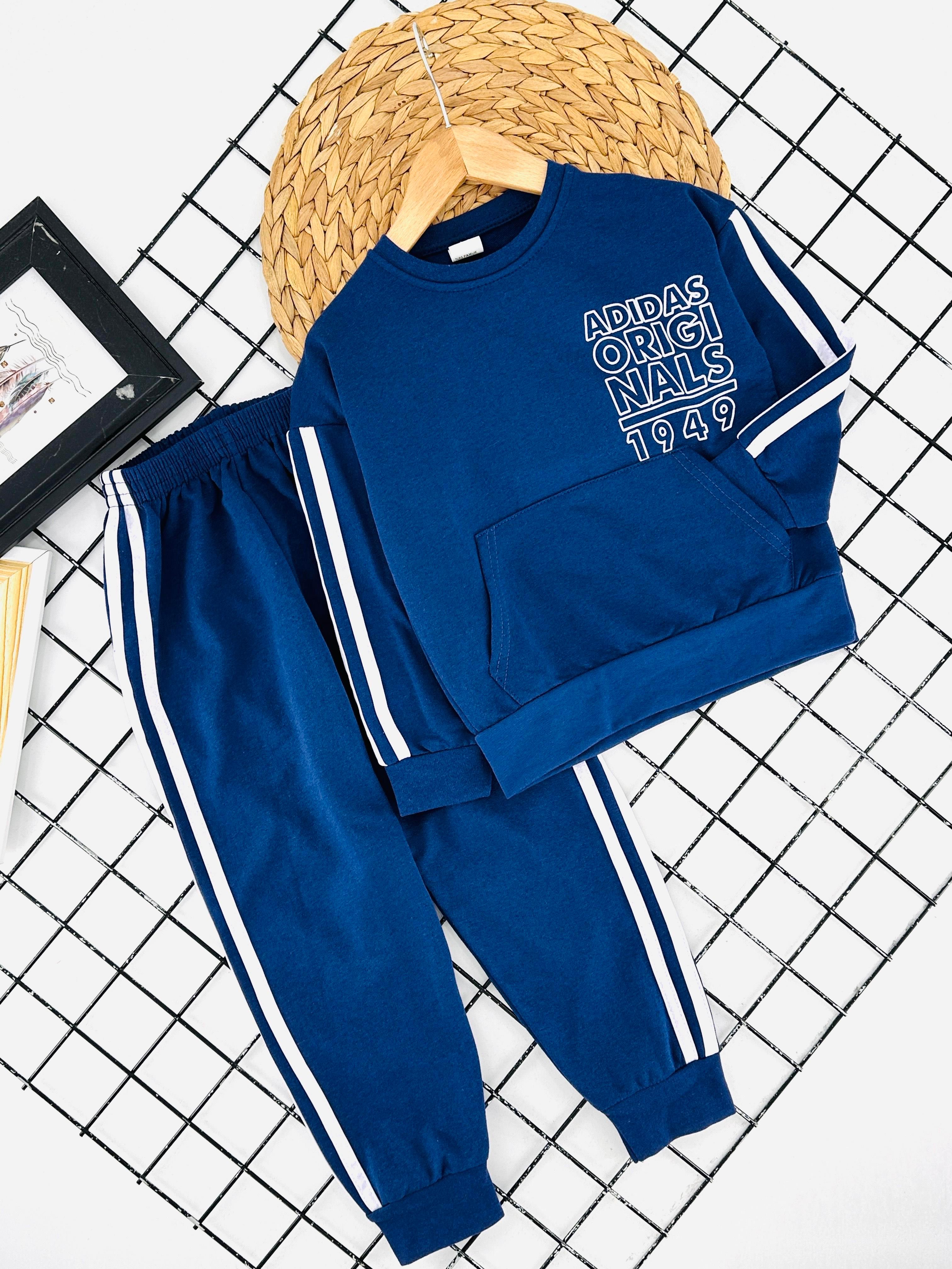 0981 Adds Orgınals Yazılı Yanları Şeritli İki İplik Penye Takım-İNDİGO MAVİ