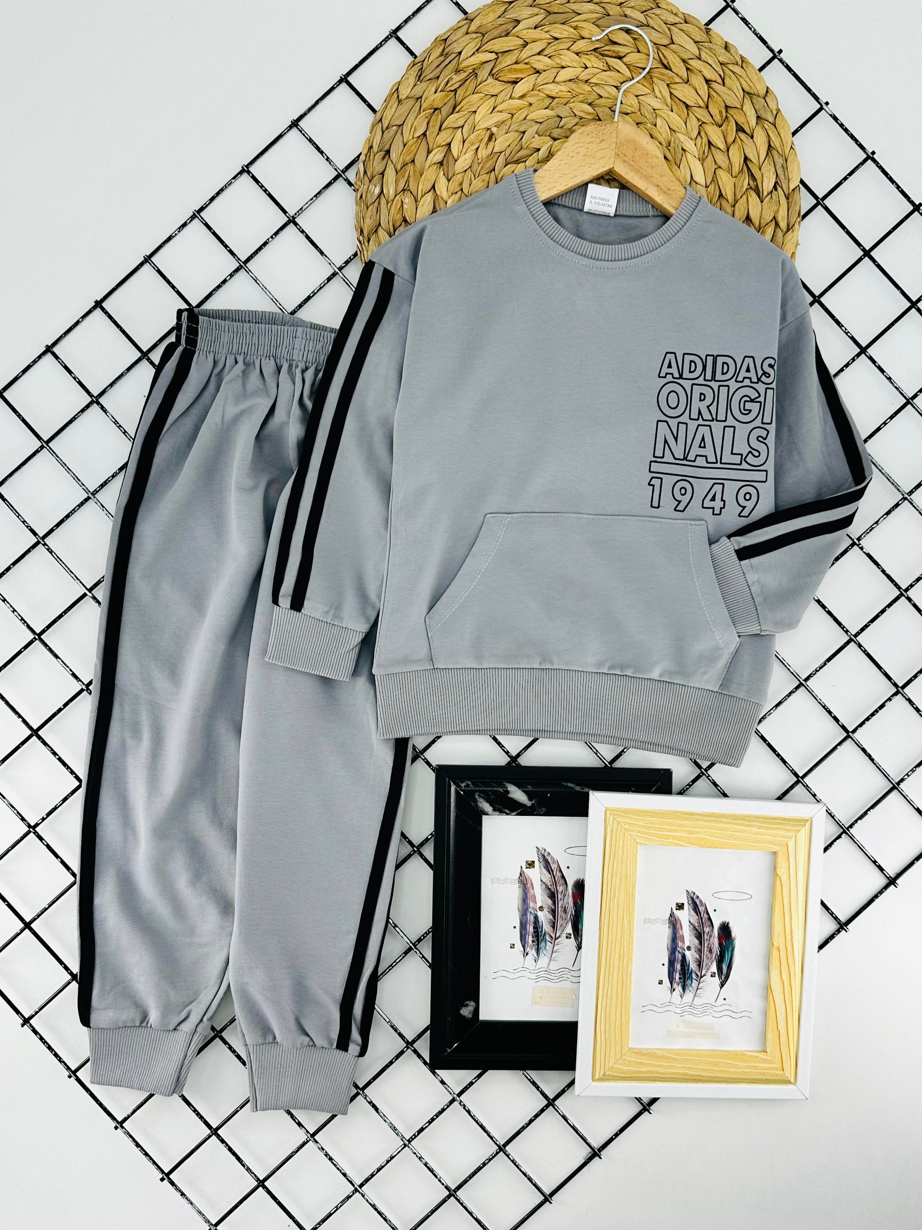 0981 Adds Orgınals Yazılı Yanları Şeritli İki İplik Penye Takım-KOYU GRİ