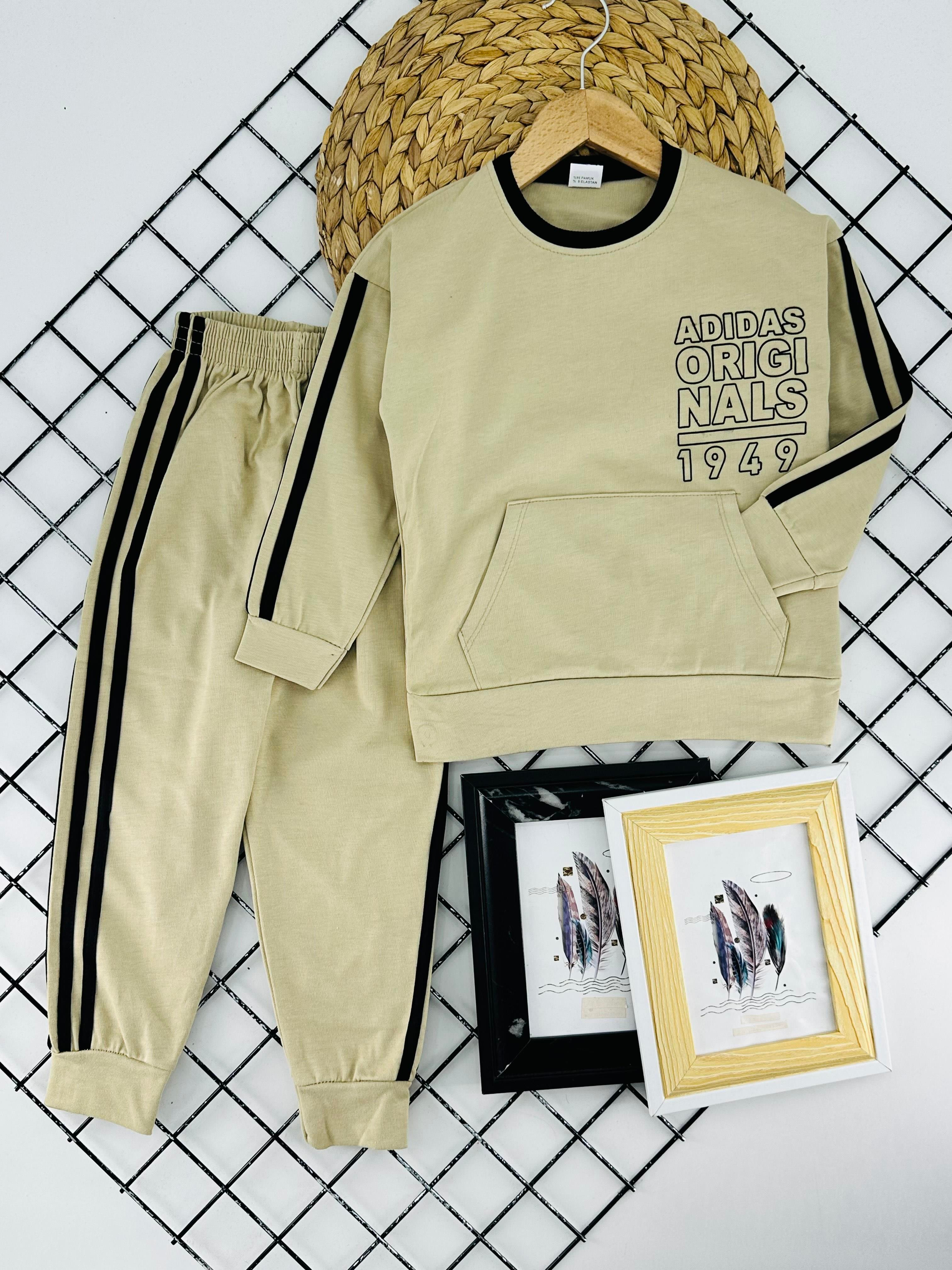 0981 Adds Orgınals Yazılı Yanları Şeritli İki İplik Penye Takım-KREM