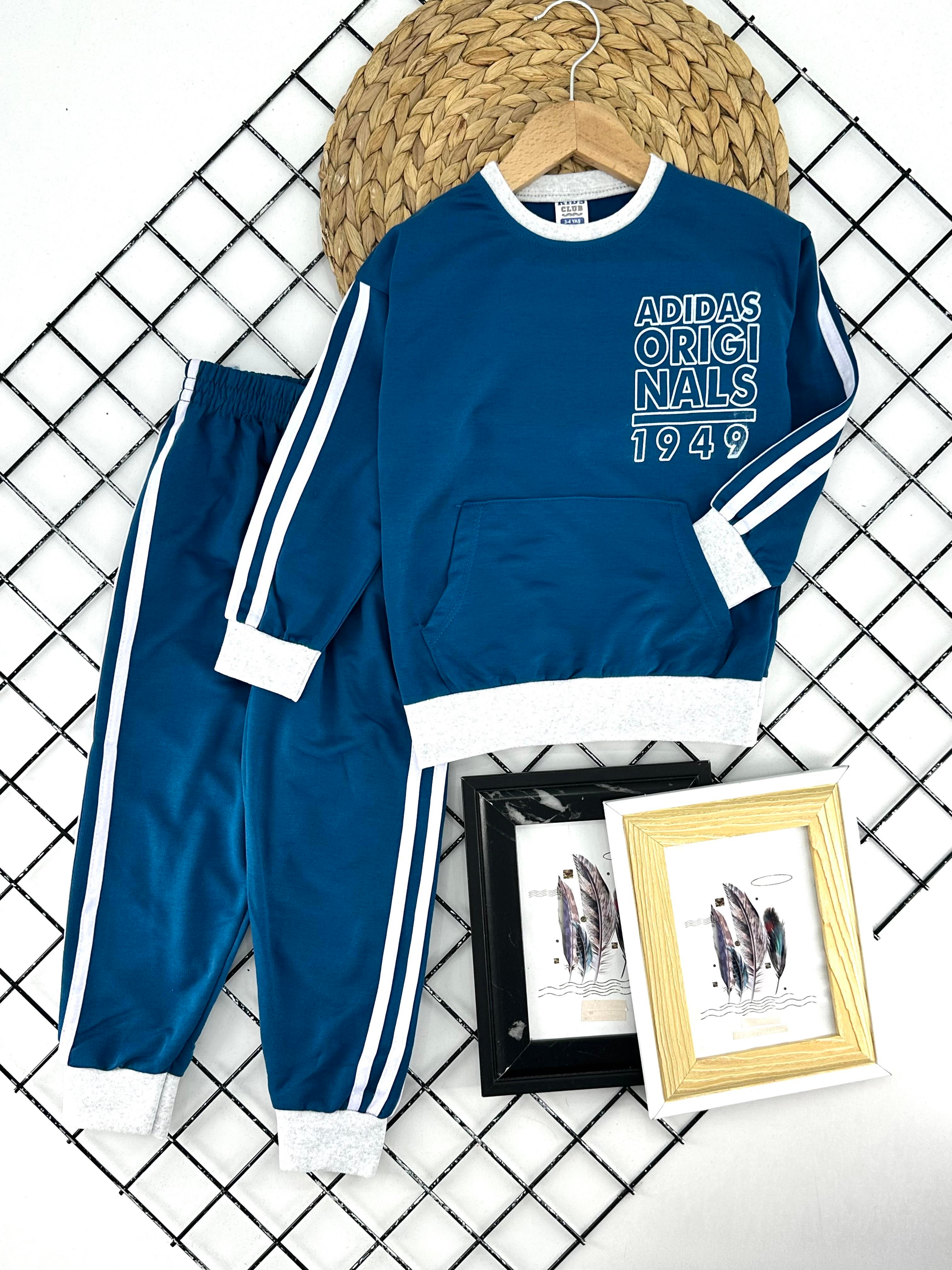 0981 Adds Orgınals Yazılı Yanları Şeritli İki İplik Penye Takım-MAVİ