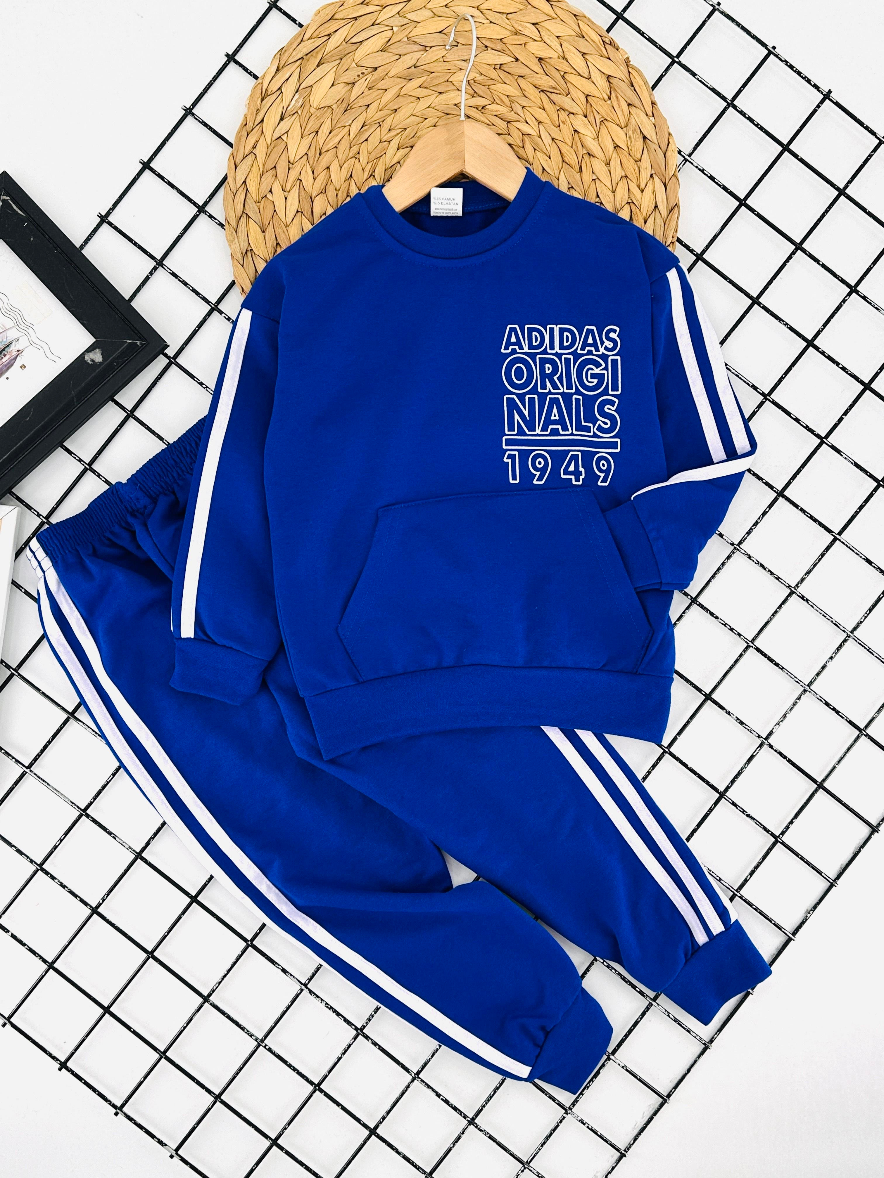 0981 Adds Orgınals Yazılı Yanları Şeritli İki İplik Penye Takım-SAKS MAVİ