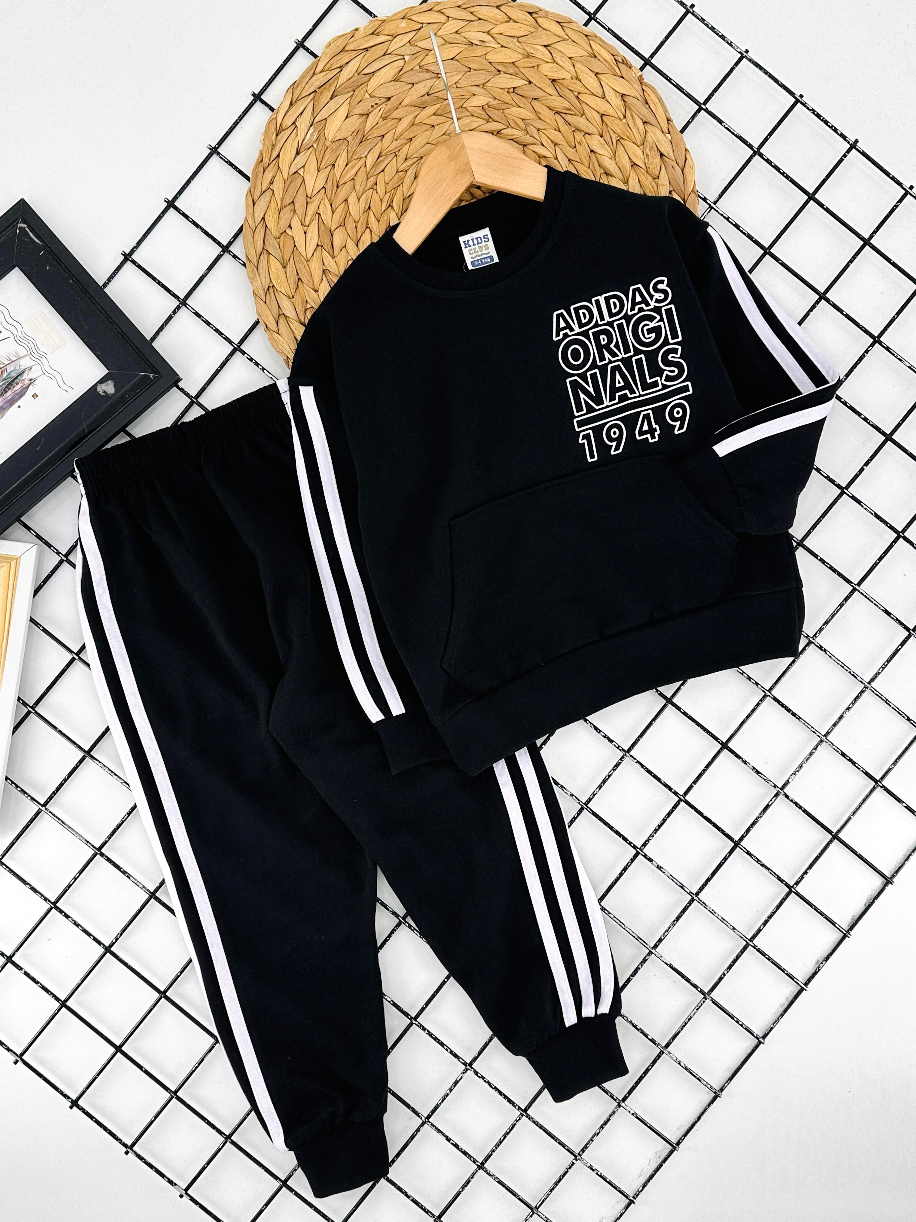 0981 Adds Orgınals Yazılı Yanları Şeritli İki İplik Penye Takım-SİYAH