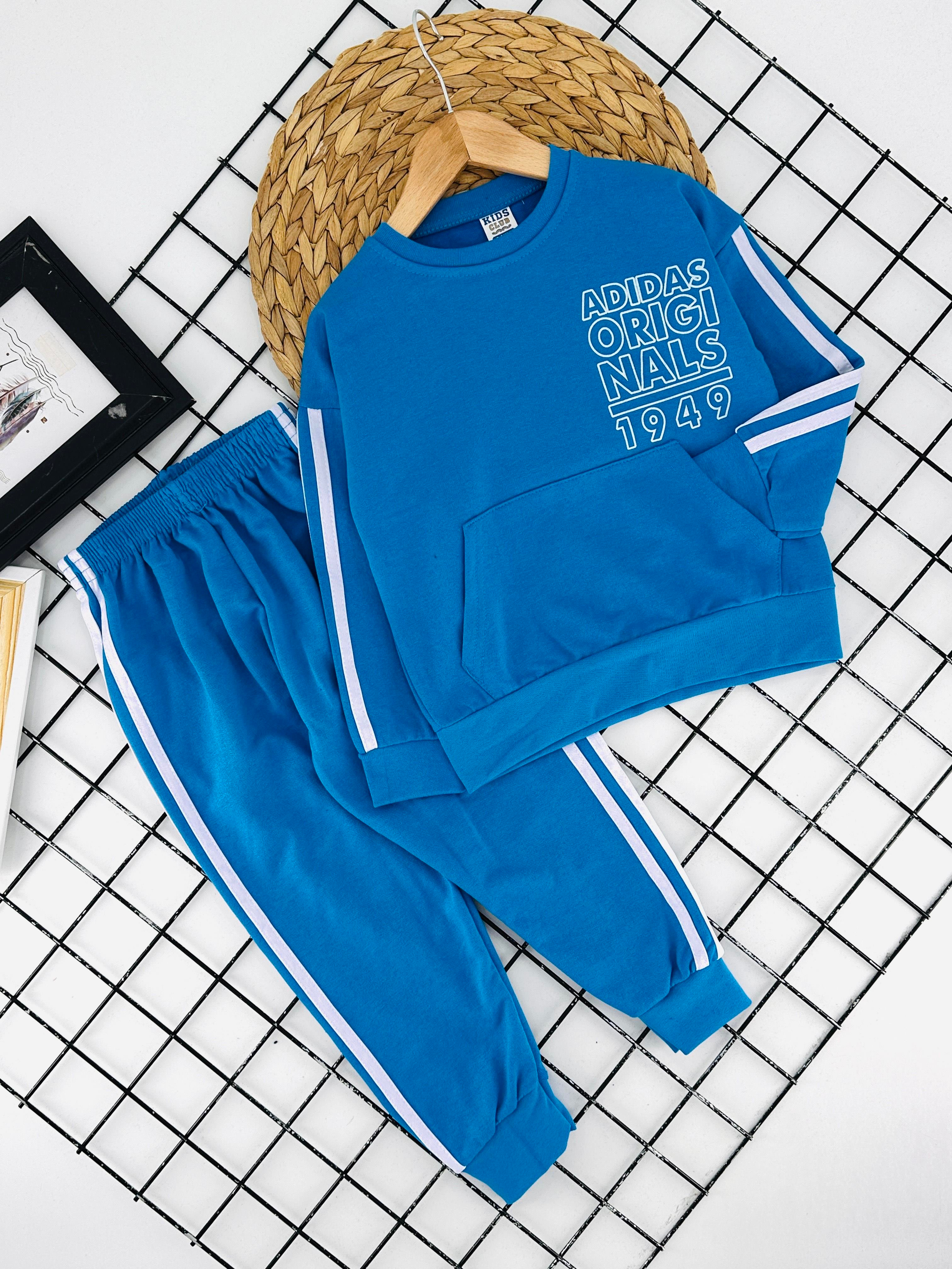0981 Adds Orgınals Yazılı Yanları Şeritli İki İplik Penye Takım-TURKUAZ