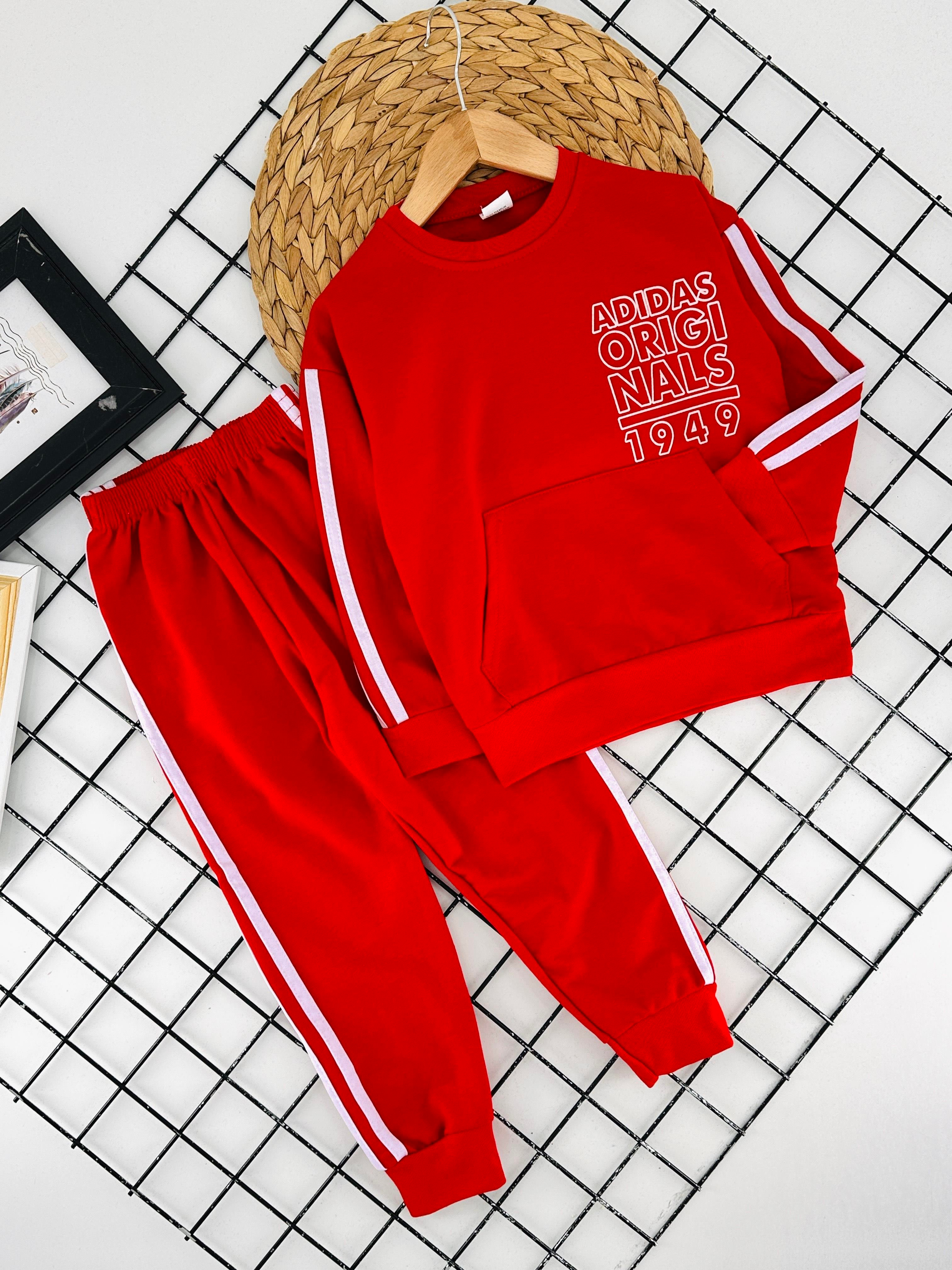 0981 Adds Orgınals Yazılı Yanları Şeritli İki İplik Penye Takım-TURUNCU