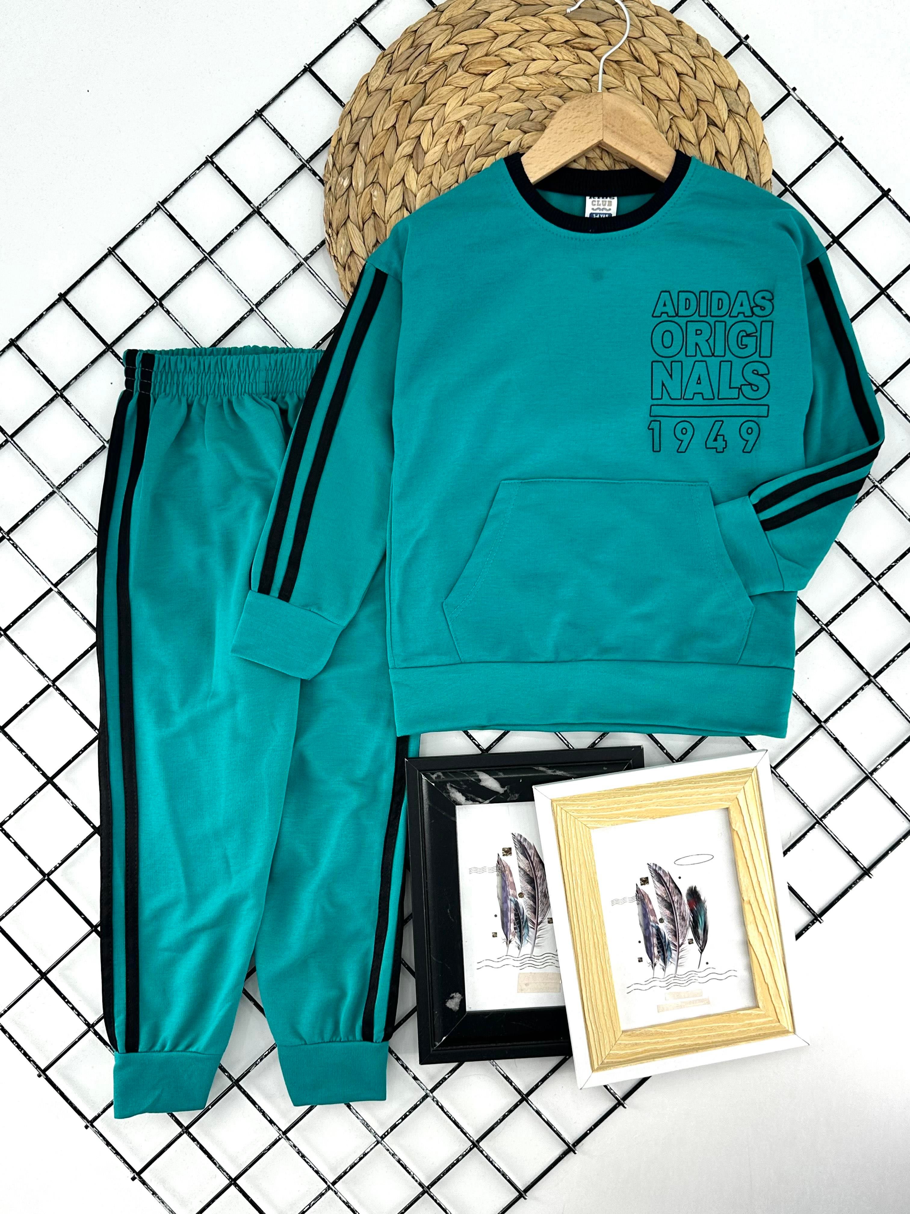 0981 Adds Orgınals Yazılı Yanları Şeritli İki İplik Penye Takım-YEŞİL