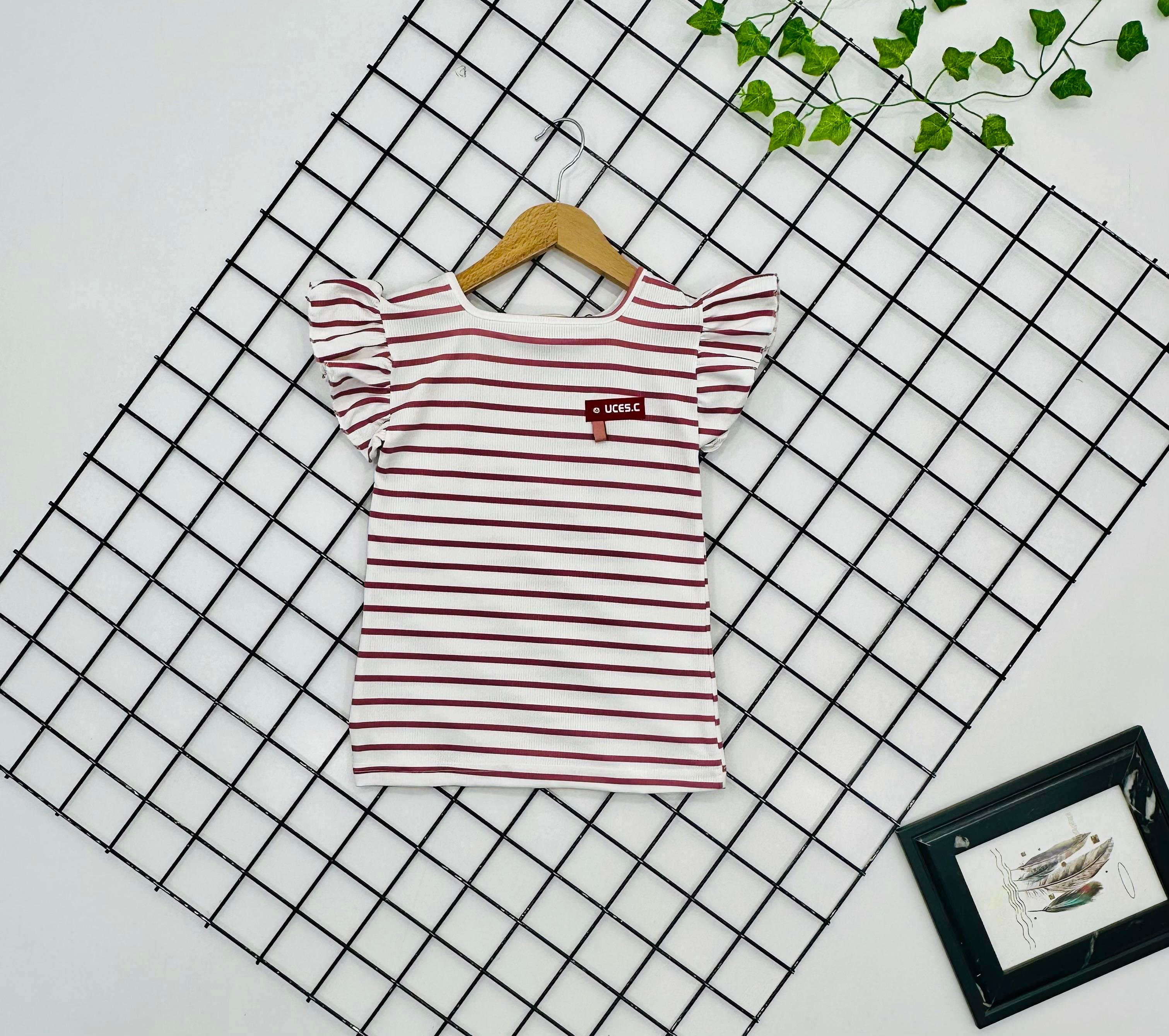 1000-2 Fitilli Kumaş Kolu Fırfırlı Çizgili Kız Çocuk Bady (6-14 Yaş)-GÜL KURUSU