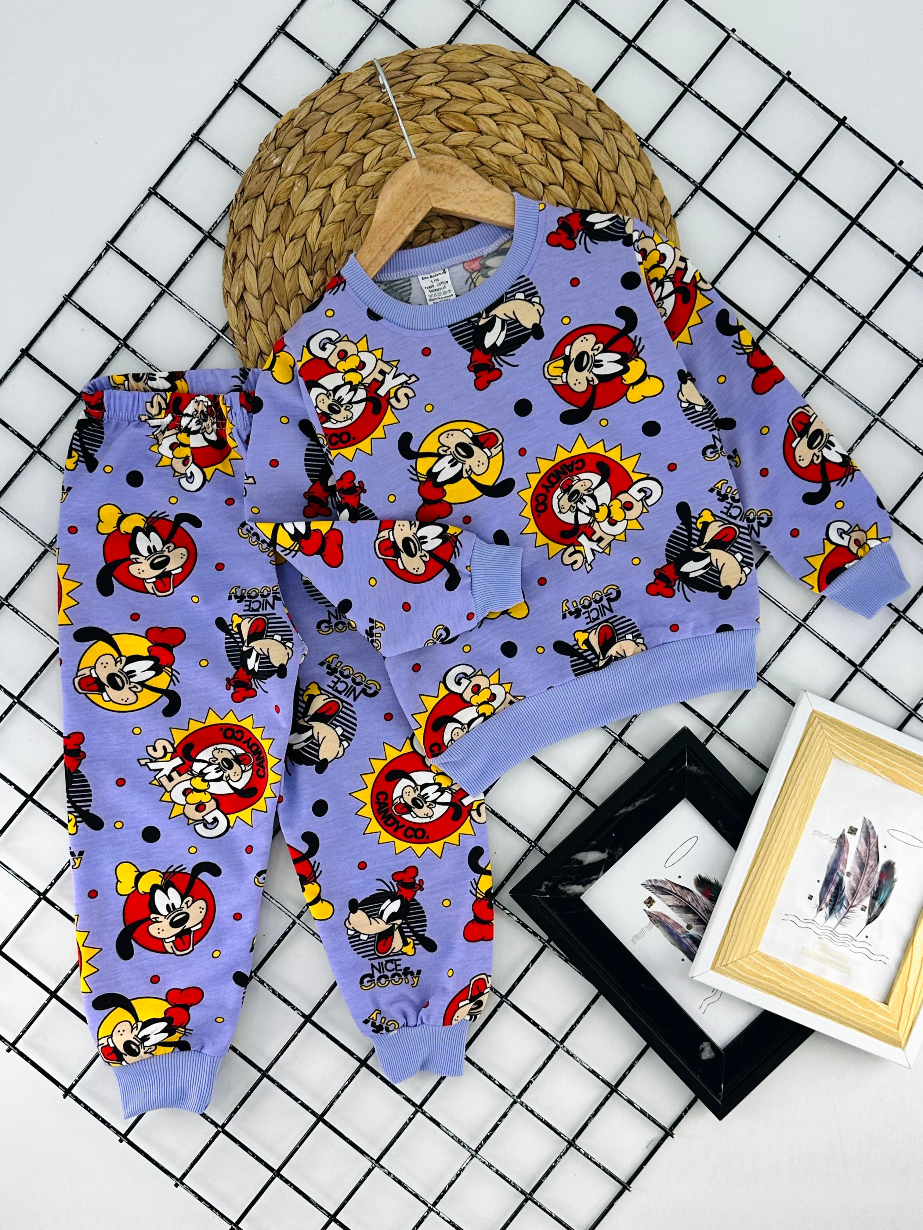 1000-38 Çoklu Donald Baskılı Kız Çocuk Penye Pijama Takımı-LİLA