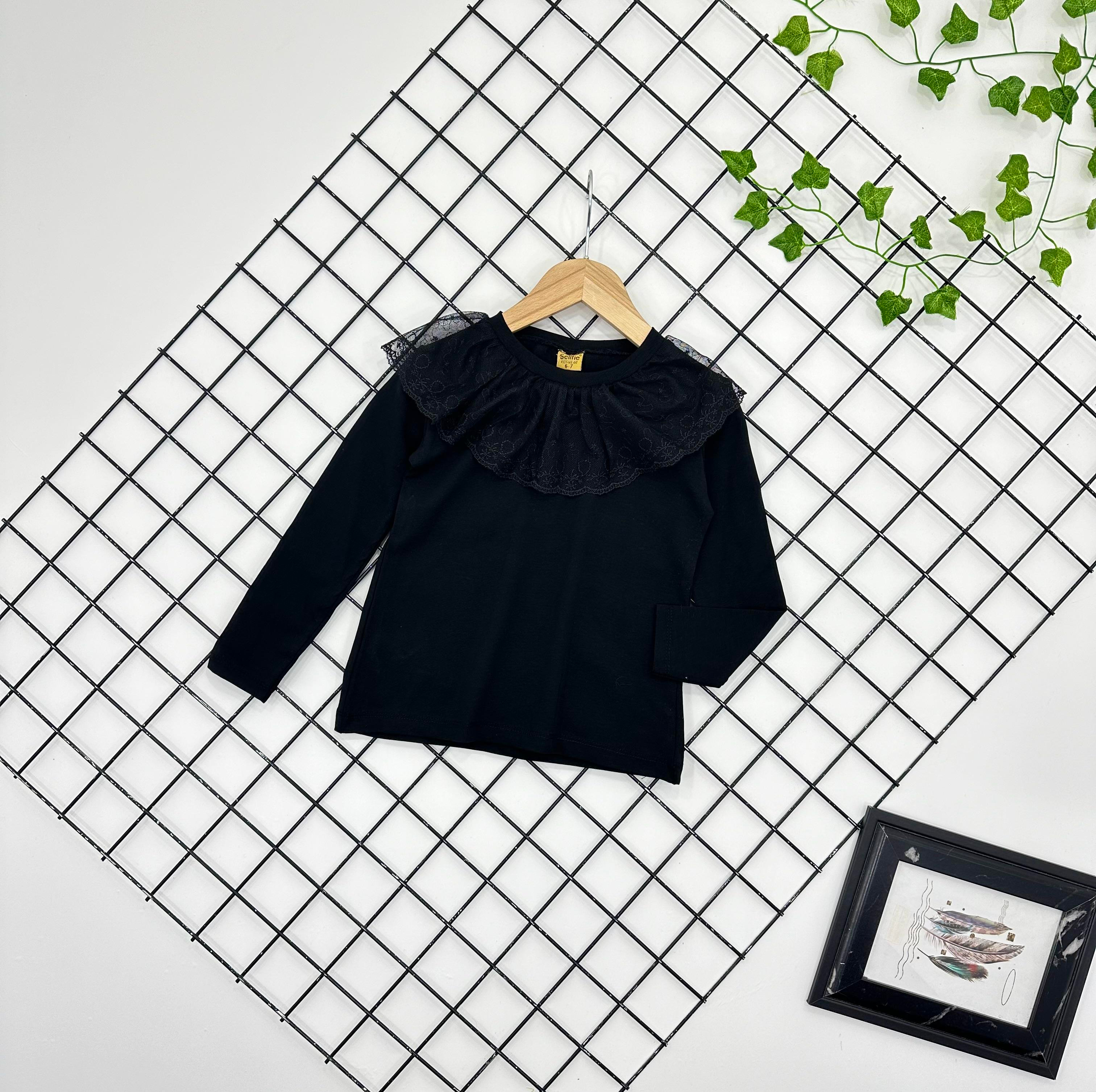 10505 Yaka Dantelli Uzun Kol Mevsimlik Kız Çocuk Bady-SİYAH